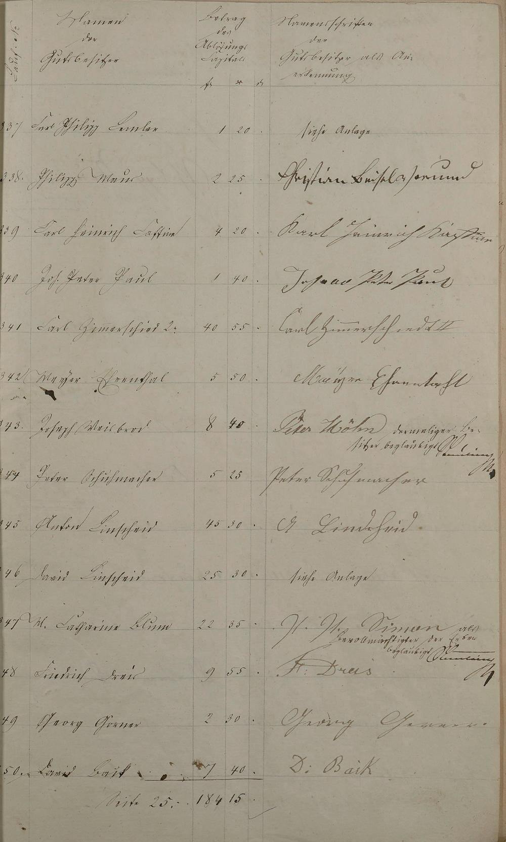Kredit durch die Herzogliche Landesbank zur Ablösung der Zehnten der Domäne, der Pfarrei Ems, der Schule Ems, der Gemeinde Dausenau und der Gräfin Giech aus Nassau