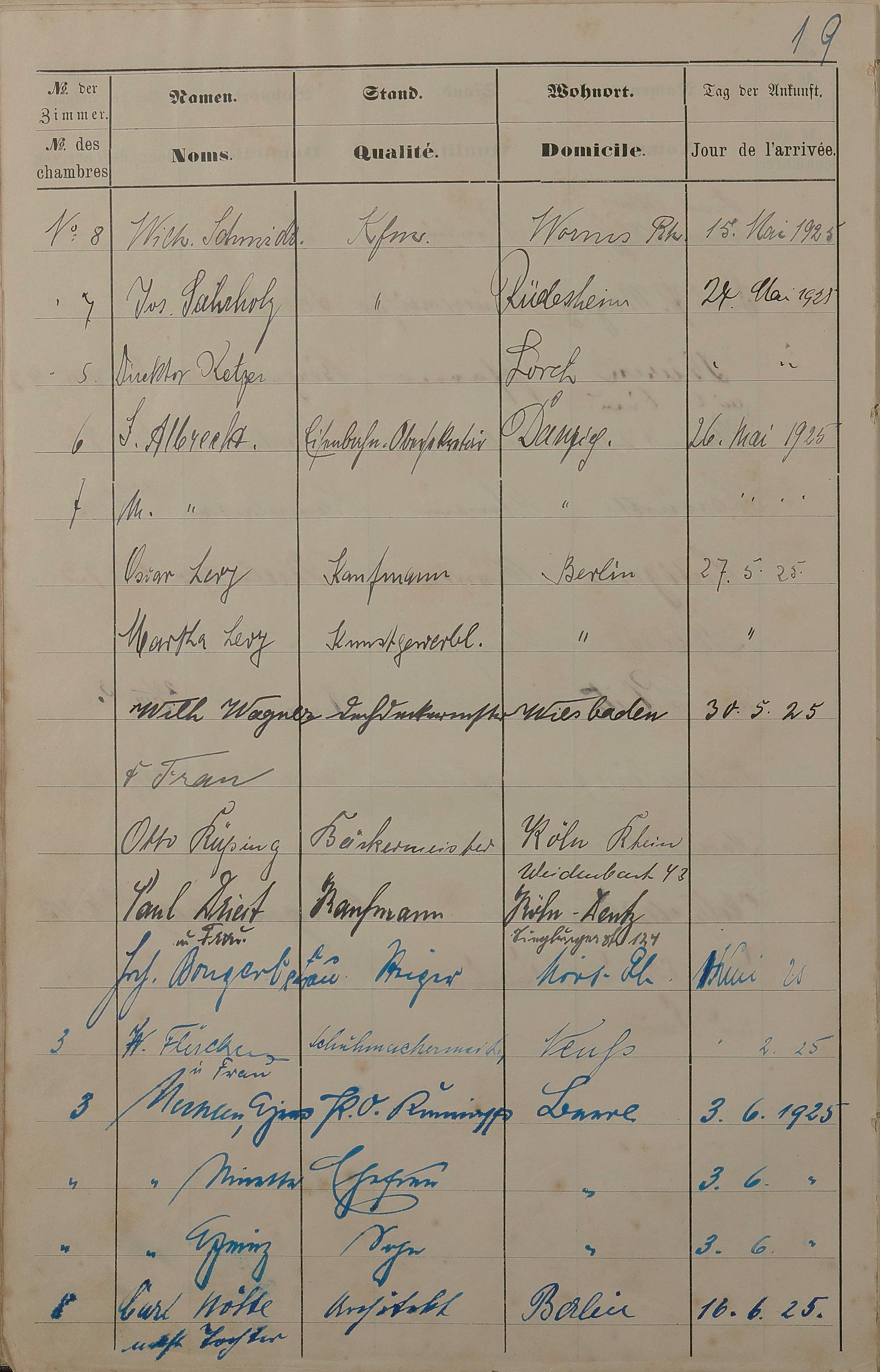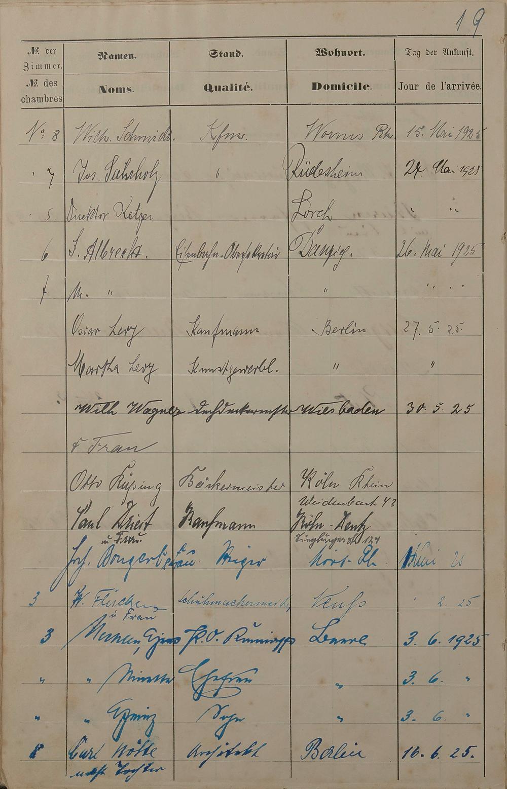 Pension "Badischer Hof" des Karl Unverzagt Lahnstraße Nr. 8 - Fremdenbuch 1889 - 13. Sept. 1893 und 15. Mai 1925 - 15. Okt. 1926