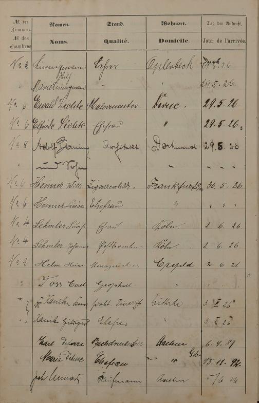 200: Pension "Badischer Hof" des Karl Unverzagt Lahnstraße Nr. 8 - Fremdenbuch 1889...