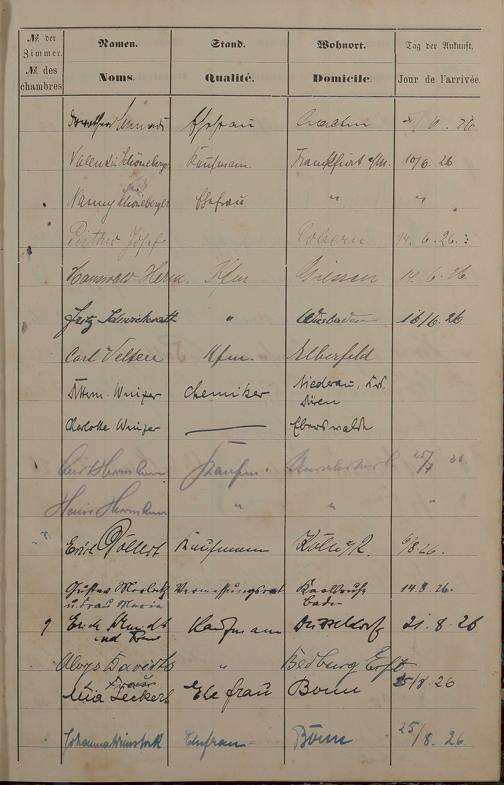 200: Pension "Badischer Hof" des Karl Unverzagt Lahnstraße Nr. 8 - Fremdenbuch 1889...