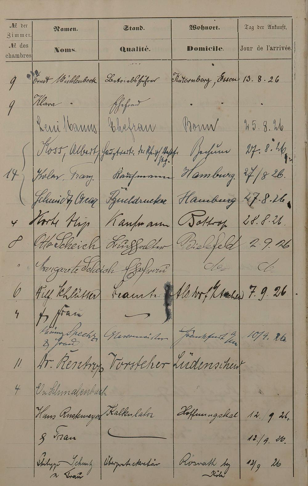 Pension "Badischer Hof" des Karl Unverzagt Lahnstraße Nr. 8 - Fremdenbuch 1889 - 13. Sept. 1893 und 15. Mai 1925 - 15. Okt. 1926