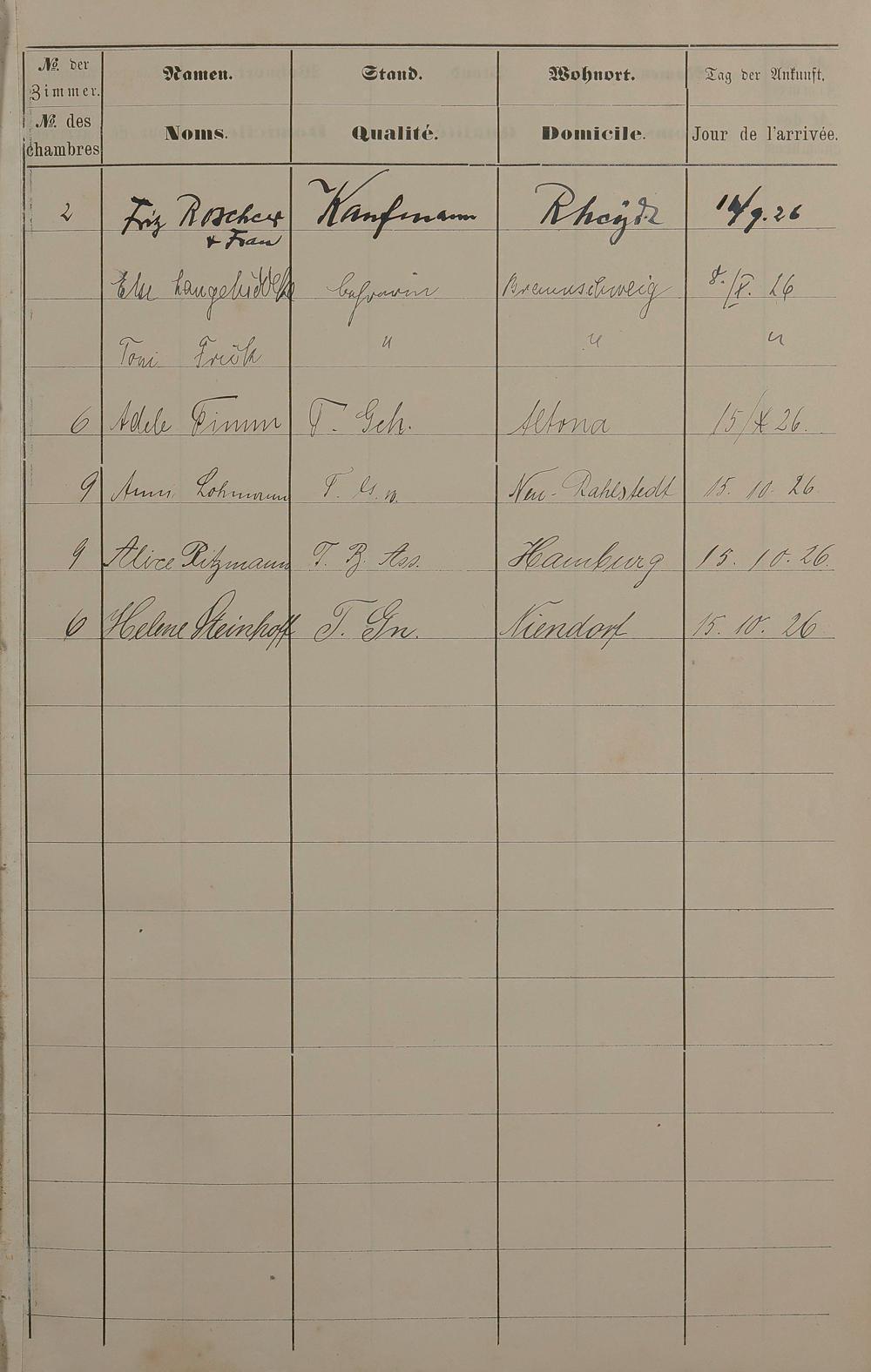 Pension "Badischer Hof" des Karl Unverzagt Lahnstraße Nr. 8 - Fremdenbuch 1889 - 13. Sept. 1893 und 15. Mai 1925 - 15. Okt. 1926