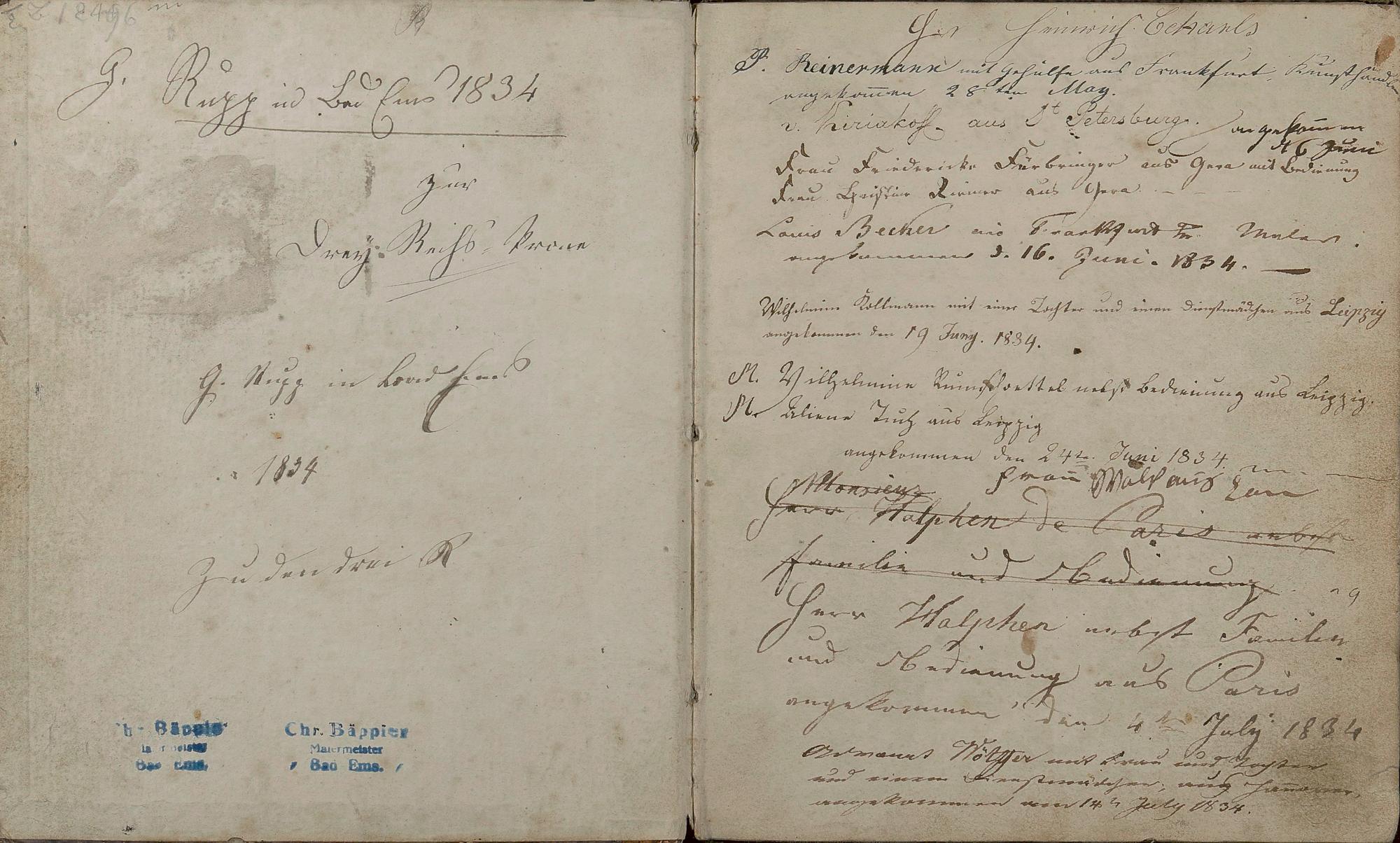 Fremdenbuch des Logierhauses "Zur Reichskrone" (Wwe. Georg Rupp), Römerstraße 22