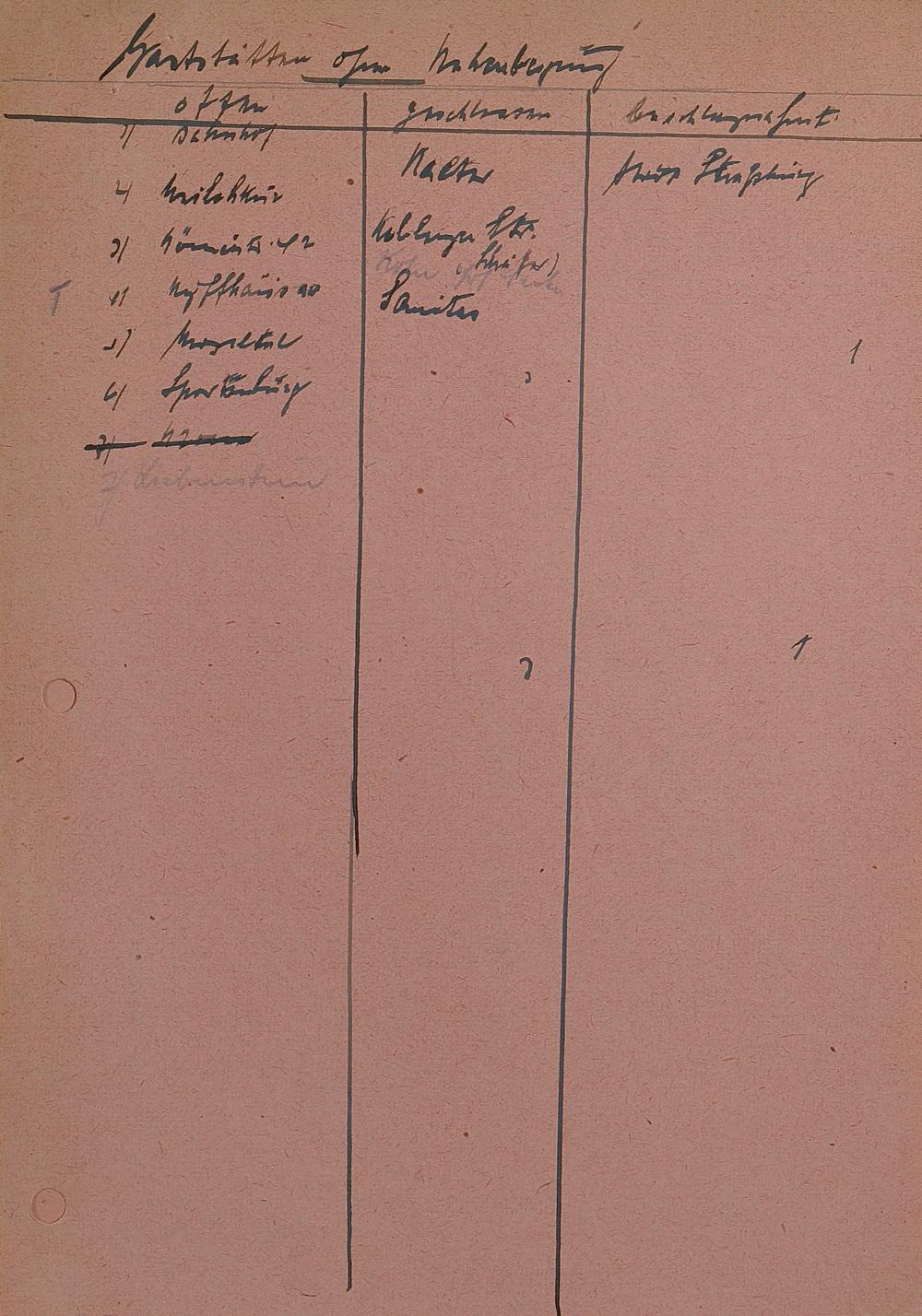 Gasthäuserliste mit Ruhetagen 1941 - 1943