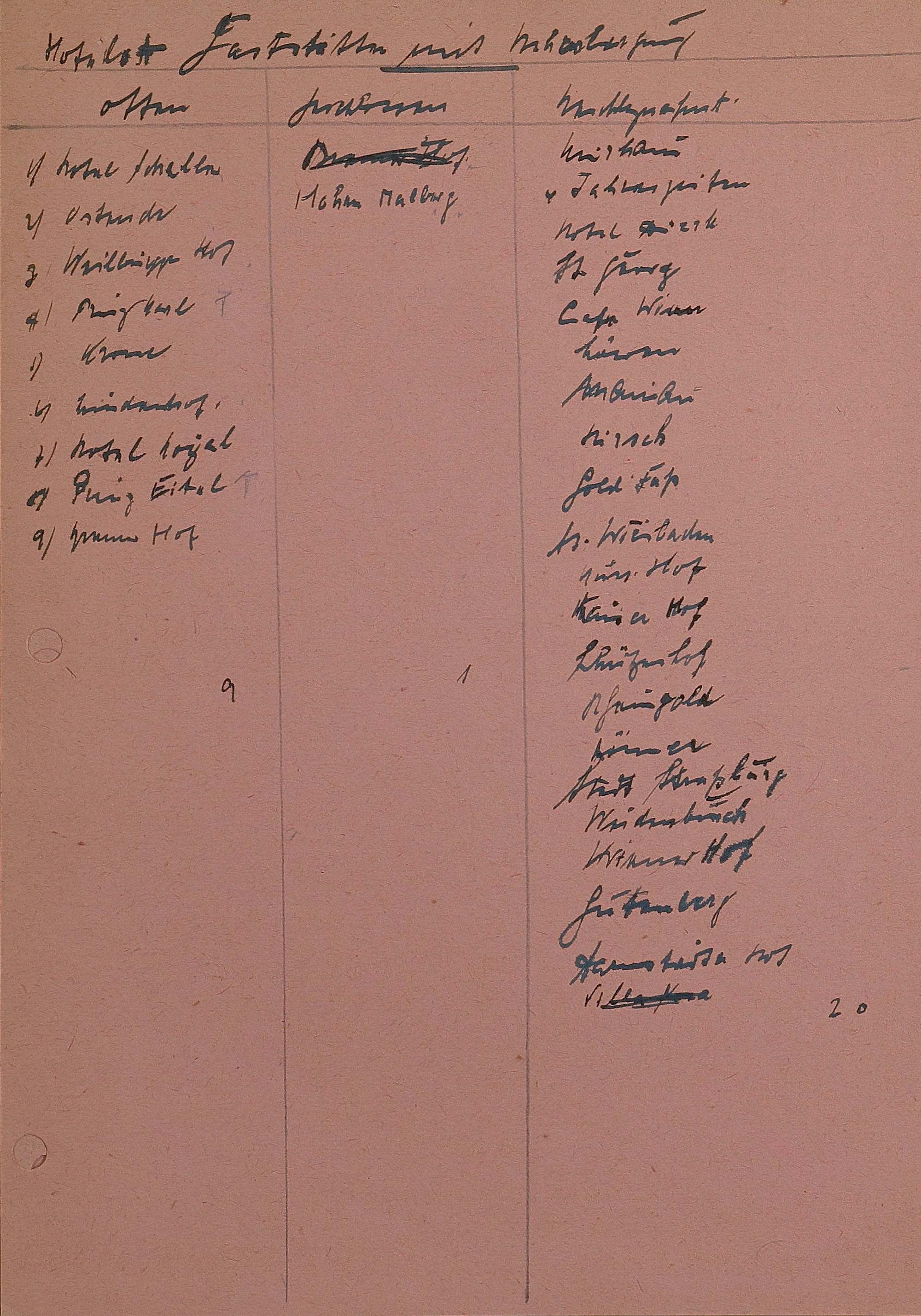Gasthäuserliste mit Ruhetagen 1941 - 1943
