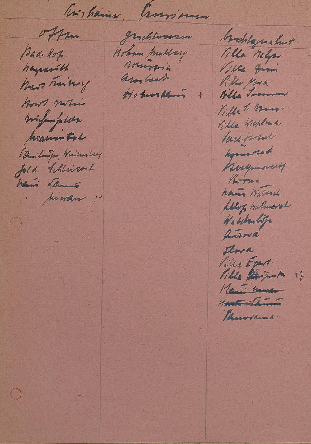 Gasthäuserliste mit Ruhetagen 1941 - 1943