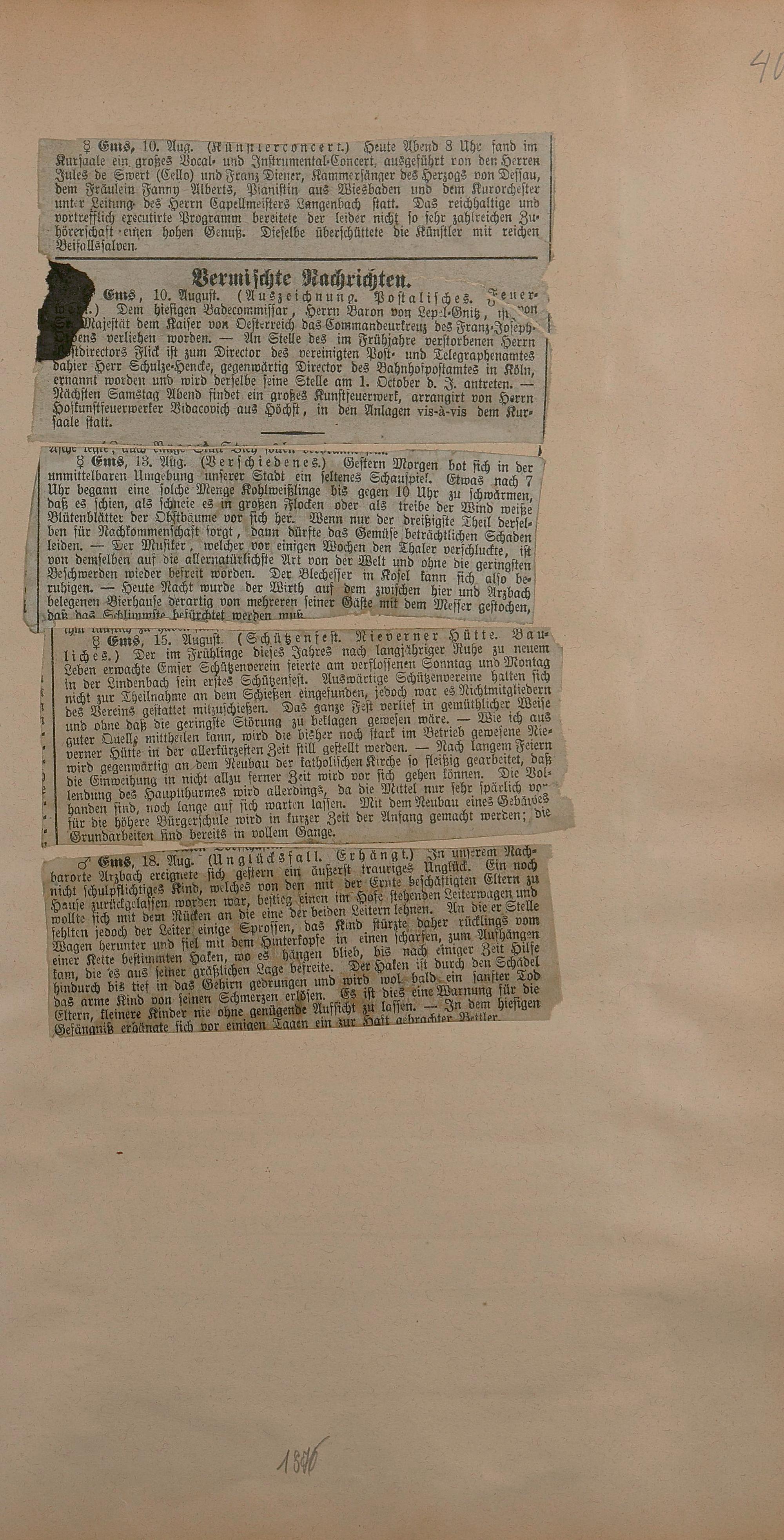 206: Sammlung von Artikeln des Korrespondenten Wilhelm Ebeling über Bad Ems im Wiesbadener...