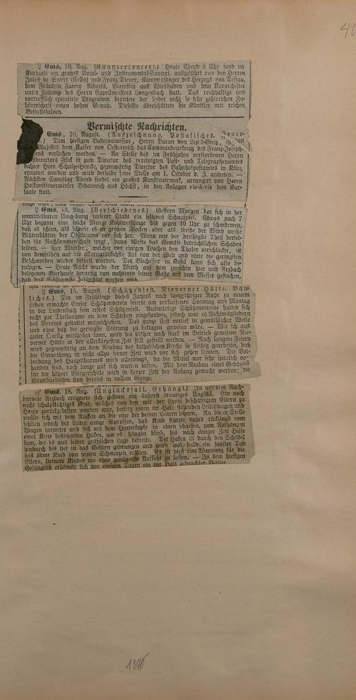 Sammlung von Artikeln des Korrespondenten Wilhelm Ebeling über Bad Ems im Wiesbadener "Rheinischen Kurier" aus den Jahren 1875-1878 und 1883-1898