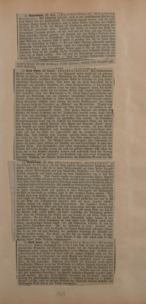 Sammlung von Artikeln des Korrespondenten Wilhelm Ebeling über Bad Ems im Wiesbadener "Rheinischen Kurier" aus den Jahren 1875-1878 und 1883-1898
