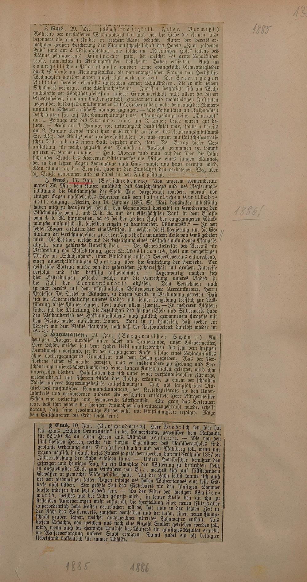 Zeitungsartikel 1885