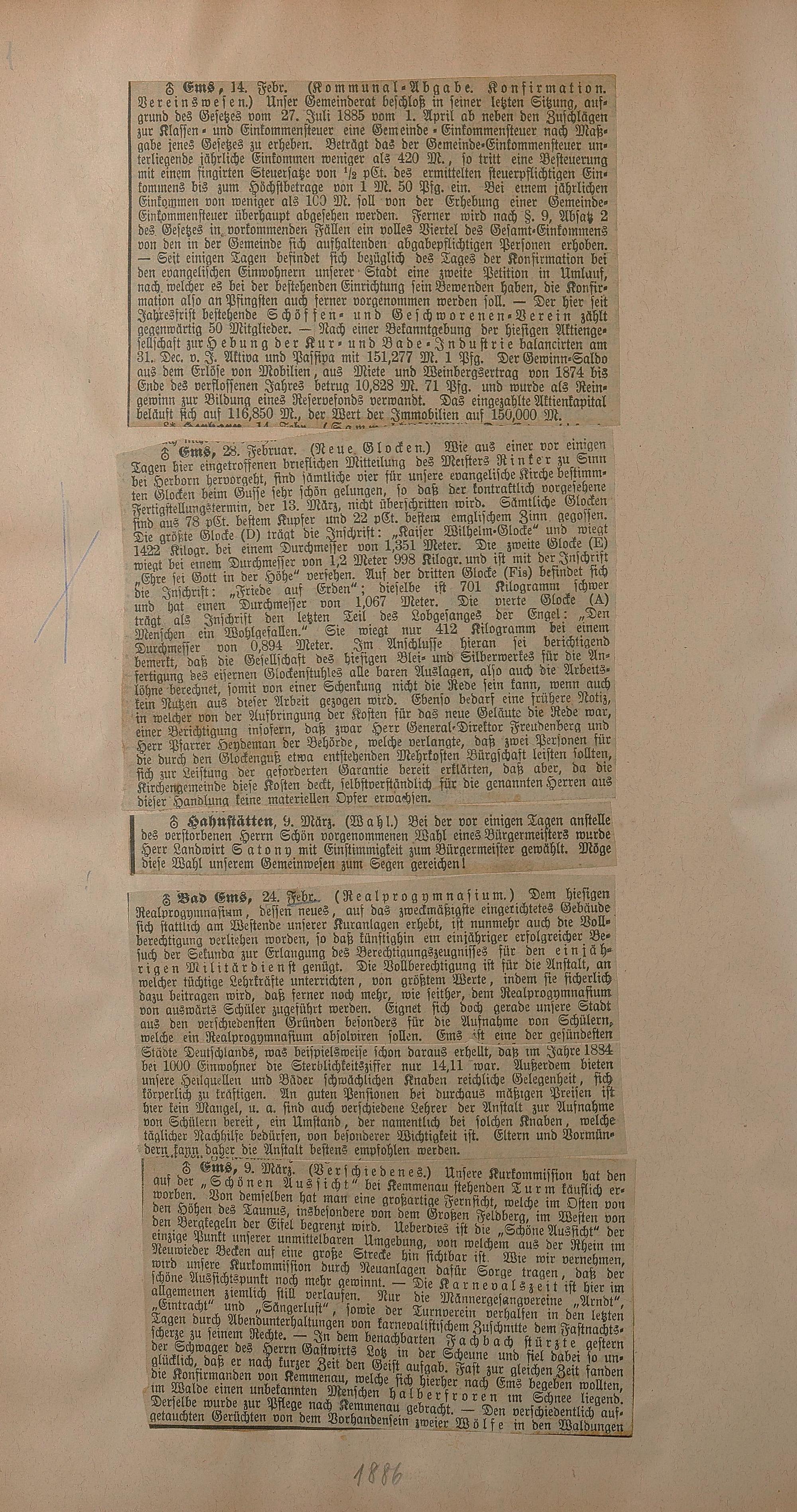 Zeitungsartikel 1886
