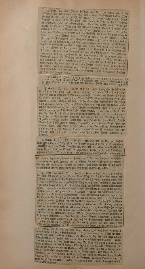 206: Sammlung von Artikeln des Korrespondenten Wilhelm Ebeling über Bad Ems im Wiesbadener...