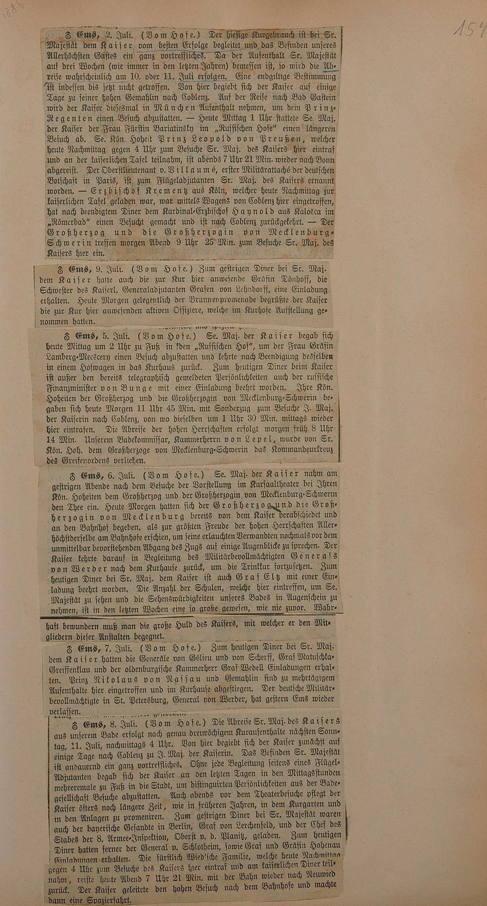 206: Sammlung von Artikeln des Korrespondenten Wilhelm Ebeling über Bad Ems im Wiesbadener...