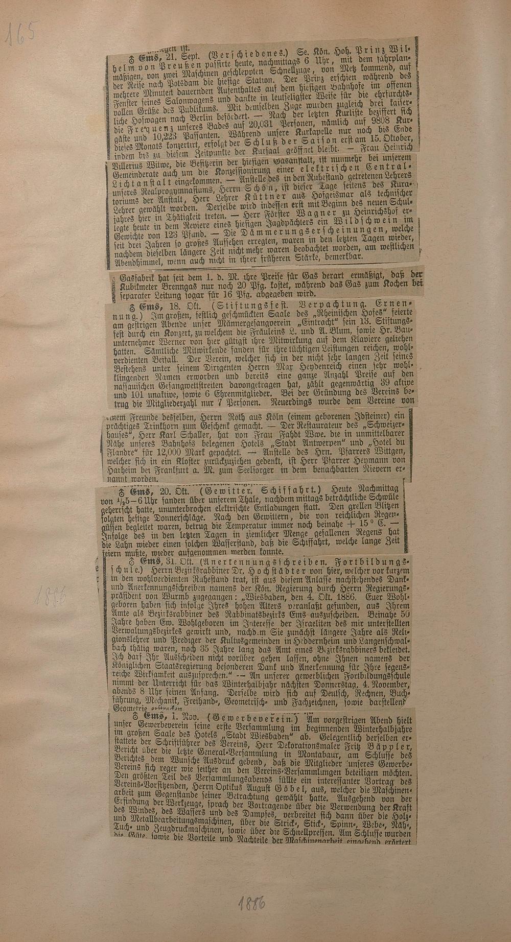 206: Sammlung von Artikeln des Korrespondenten Wilhelm Ebeling über Bad Ems im Wiesbadener...