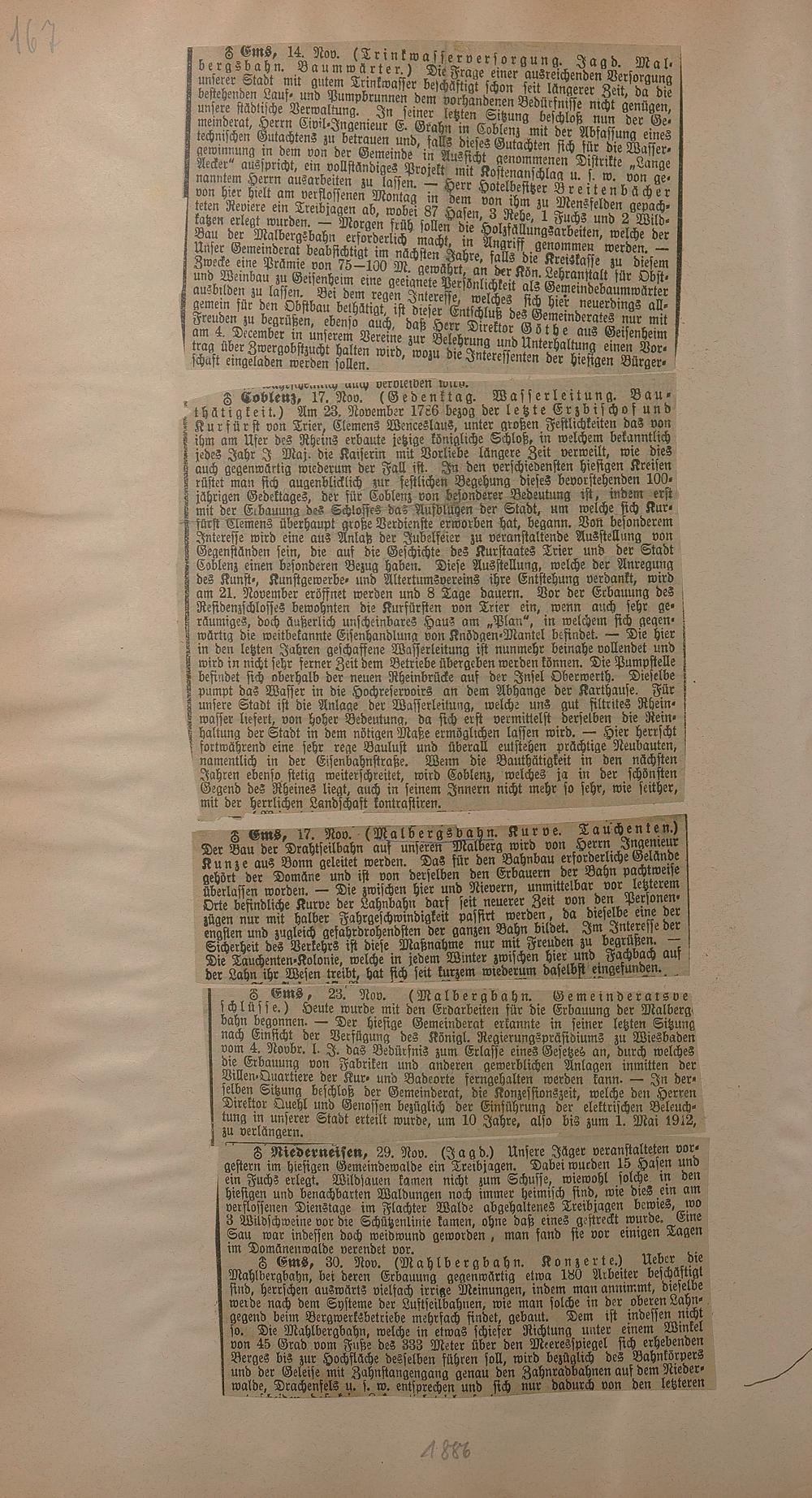 206: Sammlung von Artikeln des Korrespondenten Wilhelm Ebeling über Bad Ems im Wiesbadener...