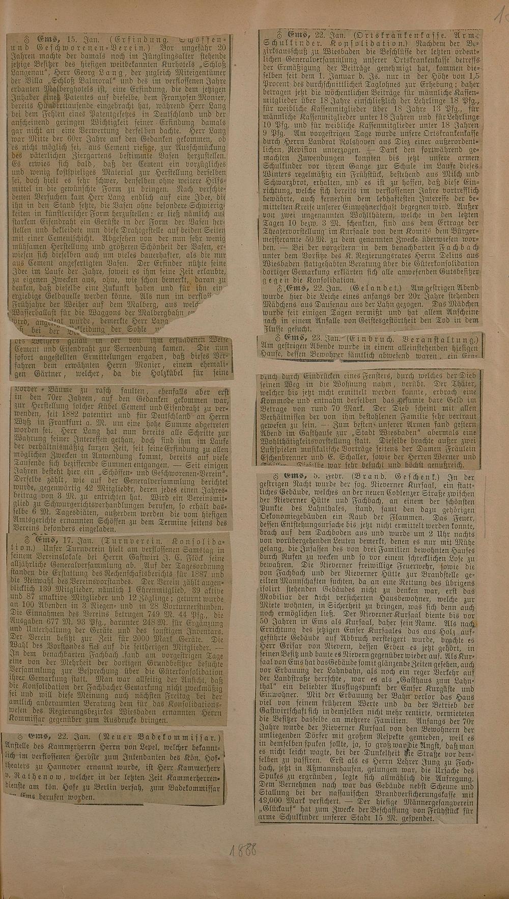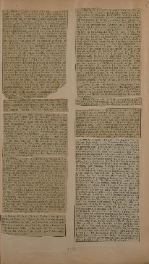 Sammlung von Artikeln des Korrespondenten Wilhelm Ebeling über Bad Ems im Wiesbadener "Rheinischen Kurier" aus den Jahren 1875-1878 und 1883-1898