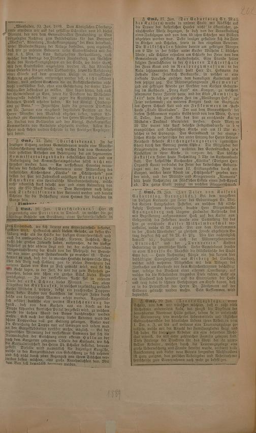 Sammlung von Artikeln des Korrespondenten Wilhelm Ebeling über Bad Ems im Wiesbadener "Rheinischen Kurier" aus den Jahren 1875-1878 und 1883-1898