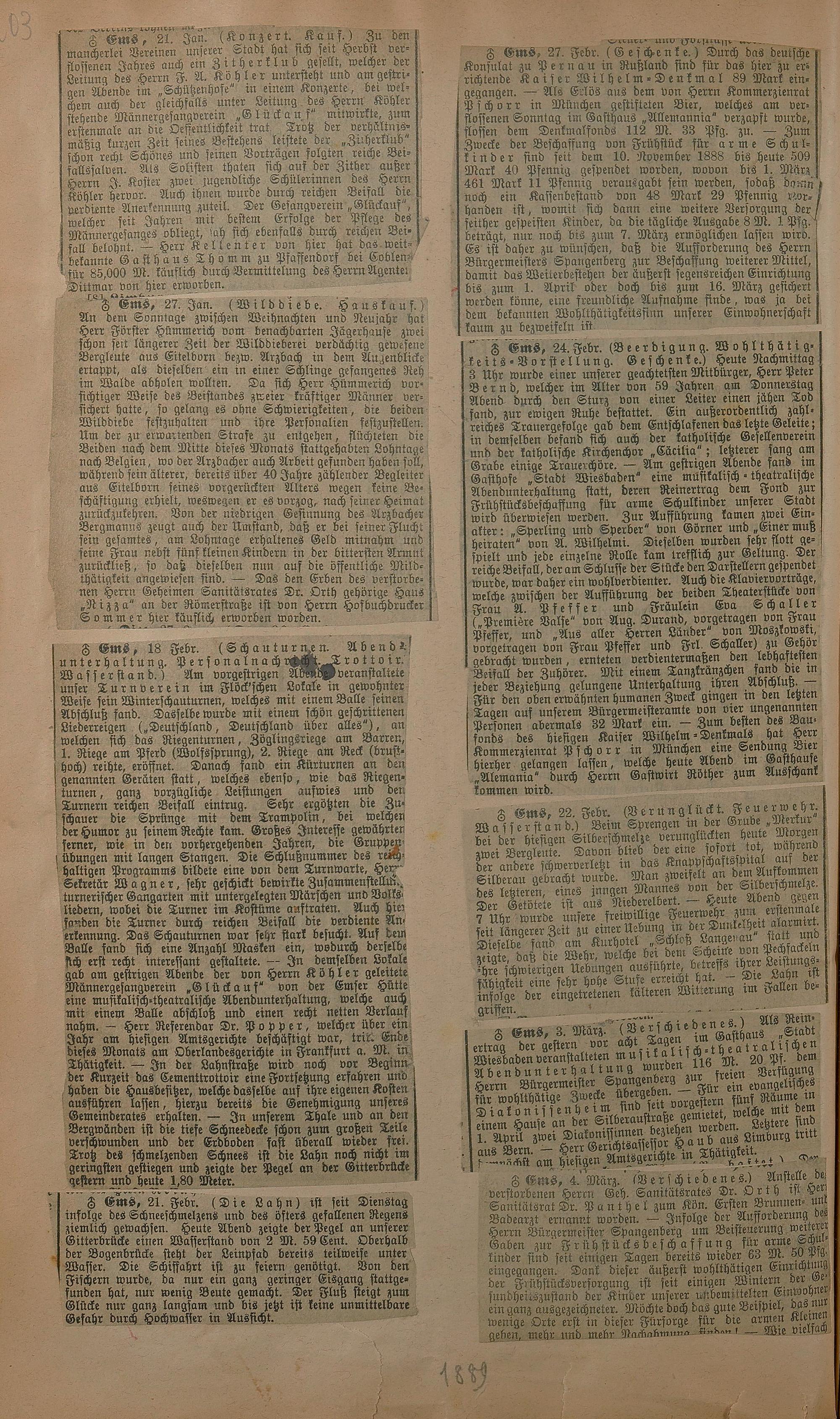 Sammlung von Artikeln des Korrespondenten Wilhelm Ebeling über Bad Ems im Wiesbadener "Rheinischen Kurier" aus den Jahren 1875-1878 und 1883-1898