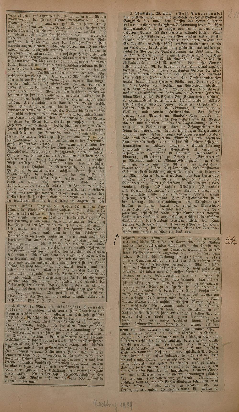Sammlung von Artikeln des Korrespondenten Wilhelm Ebeling über Bad Ems im Wiesbadener "Rheinischen Kurier" aus den Jahren 1875-1878 und 1883-1898