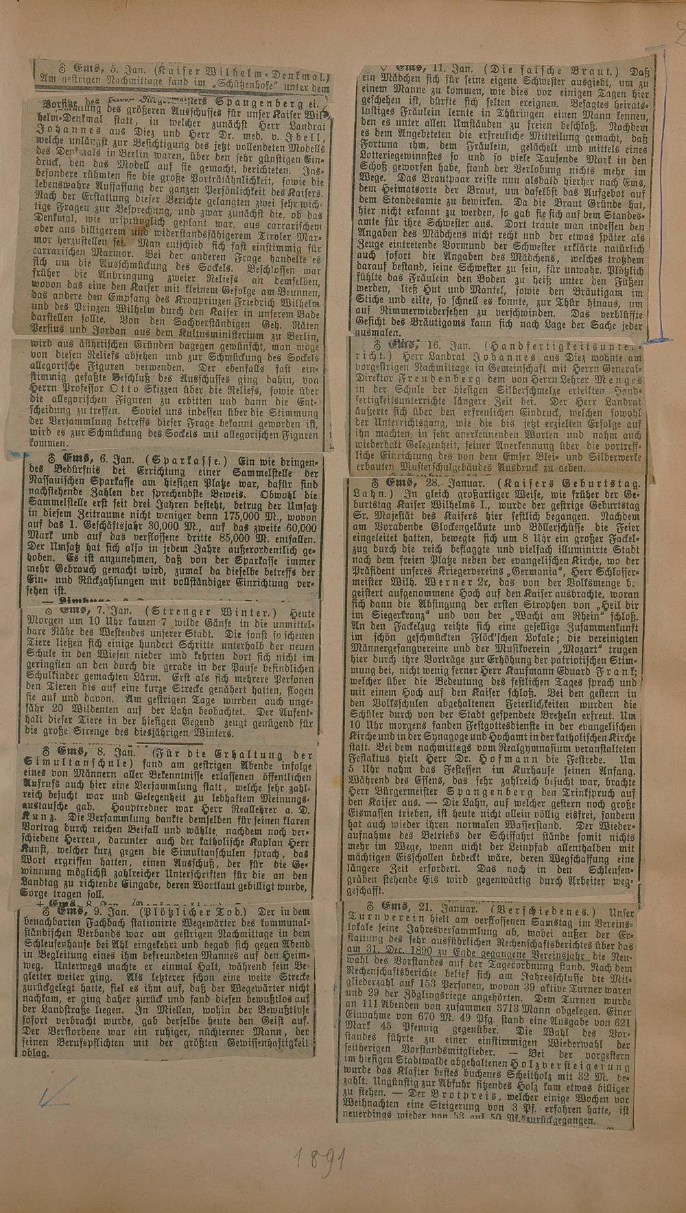 Zeitungsartikel 1891
