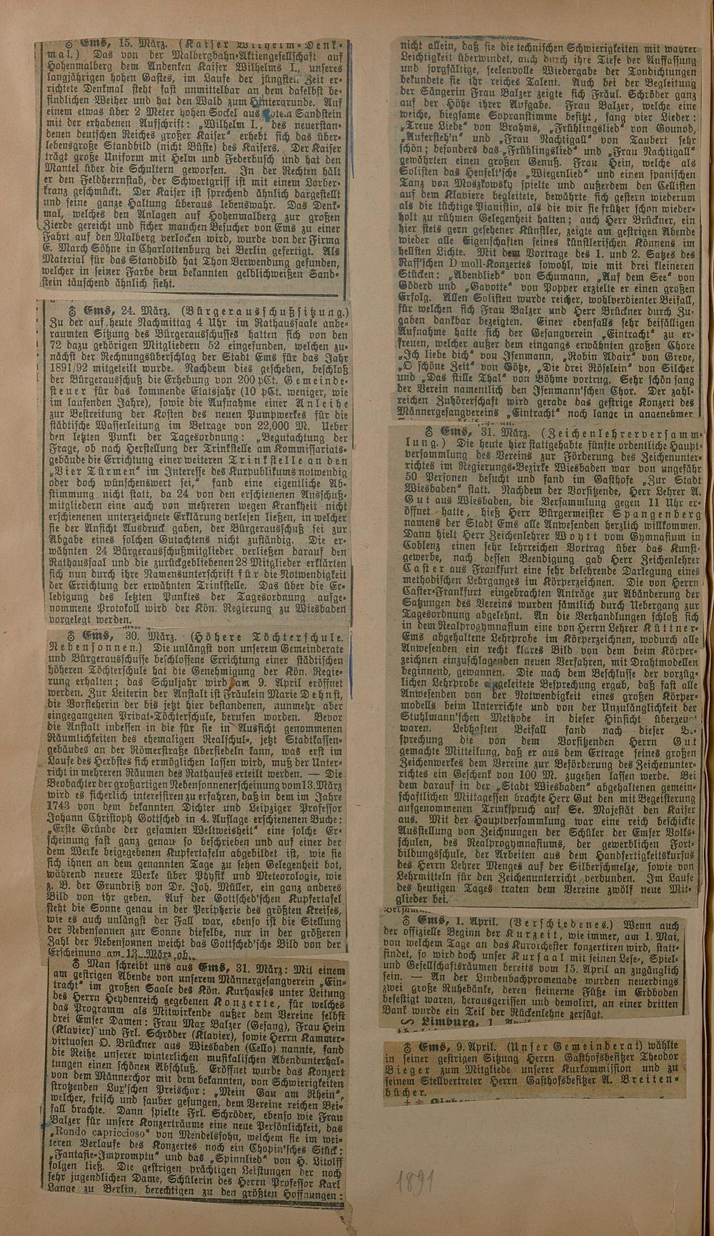 Zeitungsartikel 1891