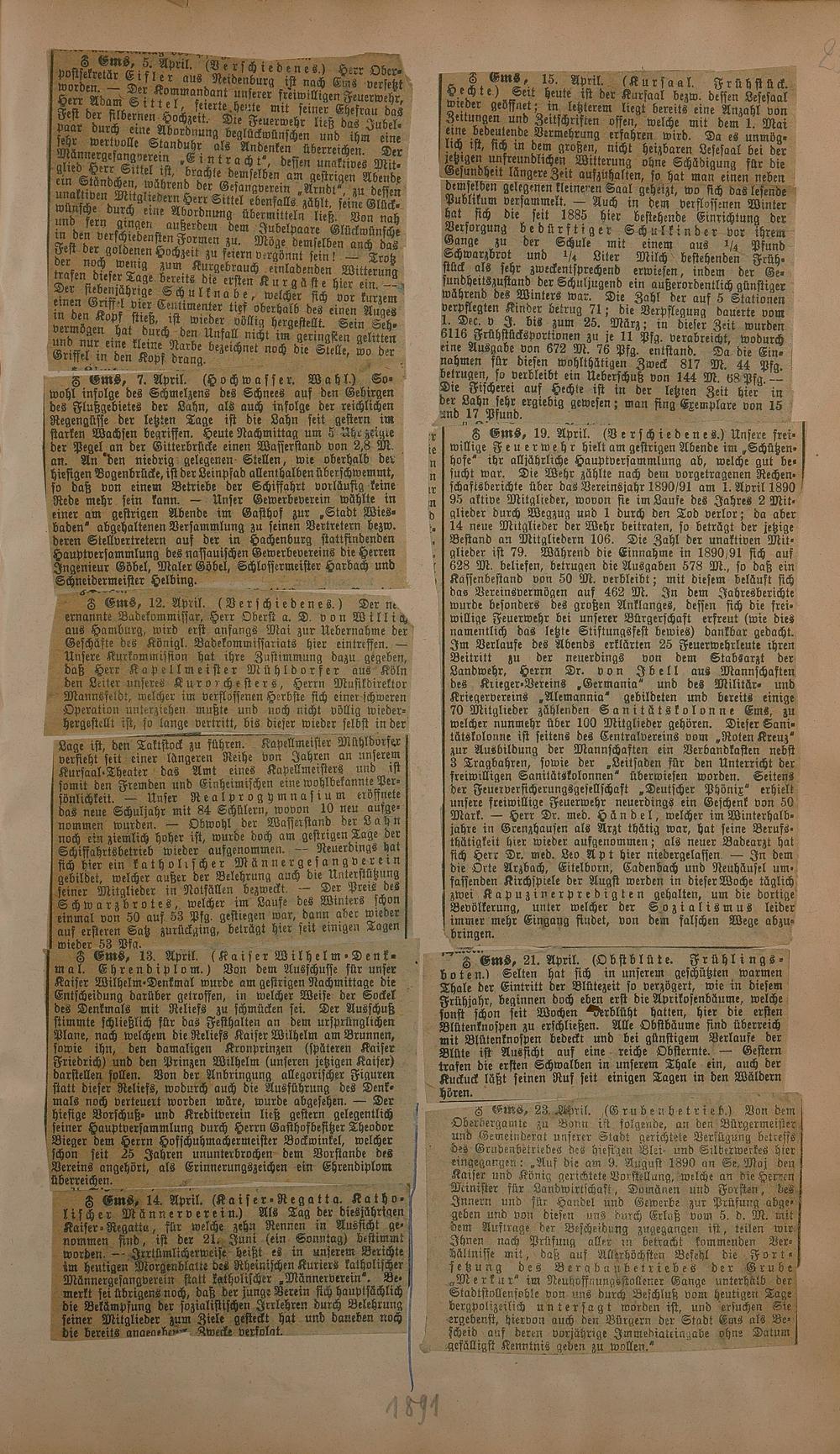 Zeitungsartikel 1891