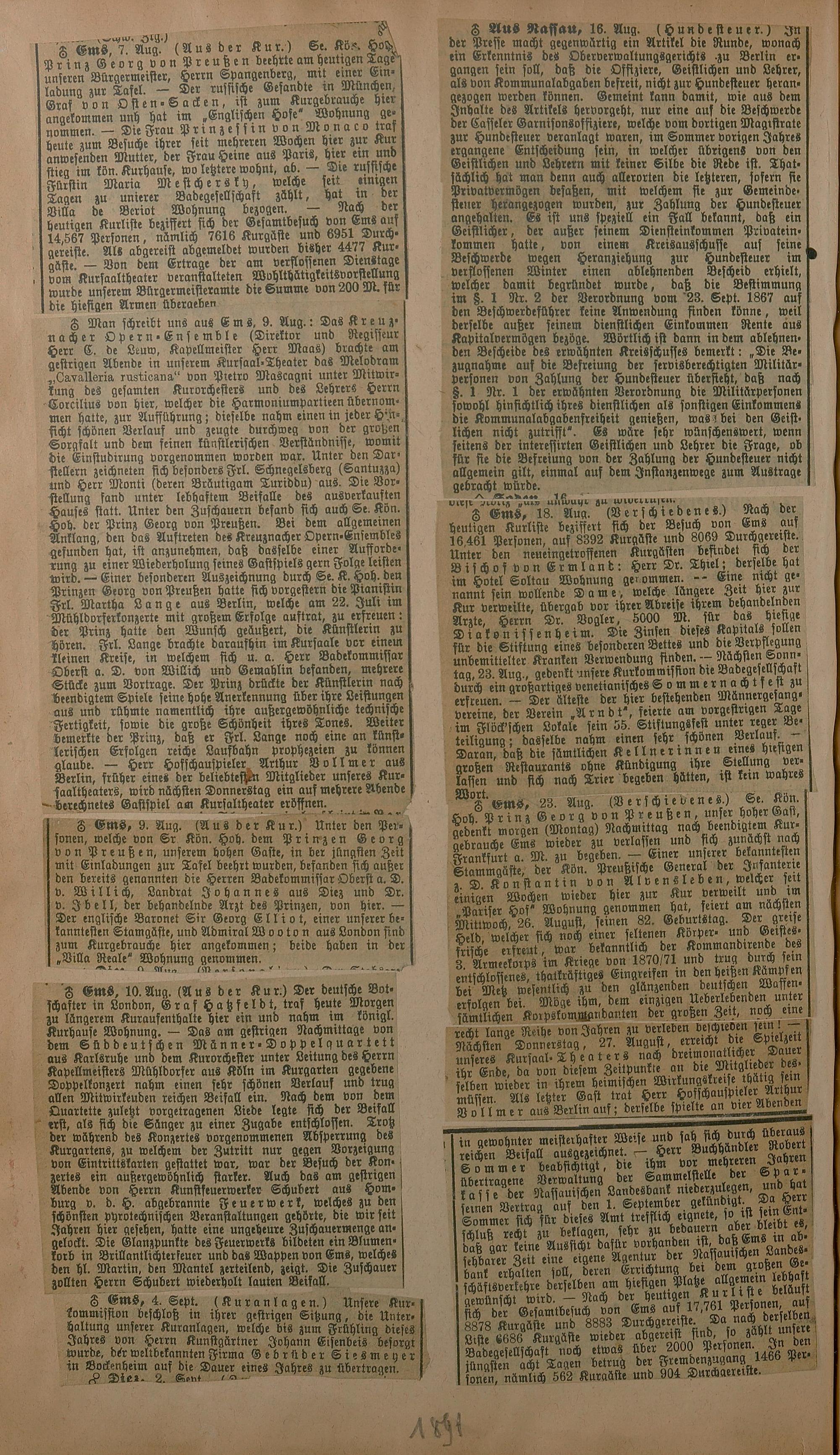 206: Sammlung von Artikeln des Korrespondenten Wilhelm Ebeling über Bad Ems im Wiesbadener...