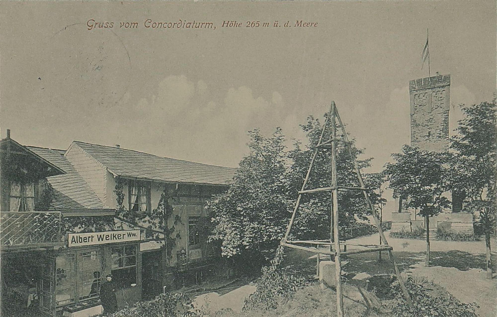 Concordia-Turm und Gasthaus "Concordiaturm" des Albert Welker/E. Brown