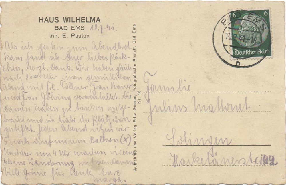 Haus "Villa Wilhelma" der Elisabeth Pauluhn geb. Klopp Bad Ems Adolf-Hitler-Straße Nr. 44/Lahnstraße Nr. 44