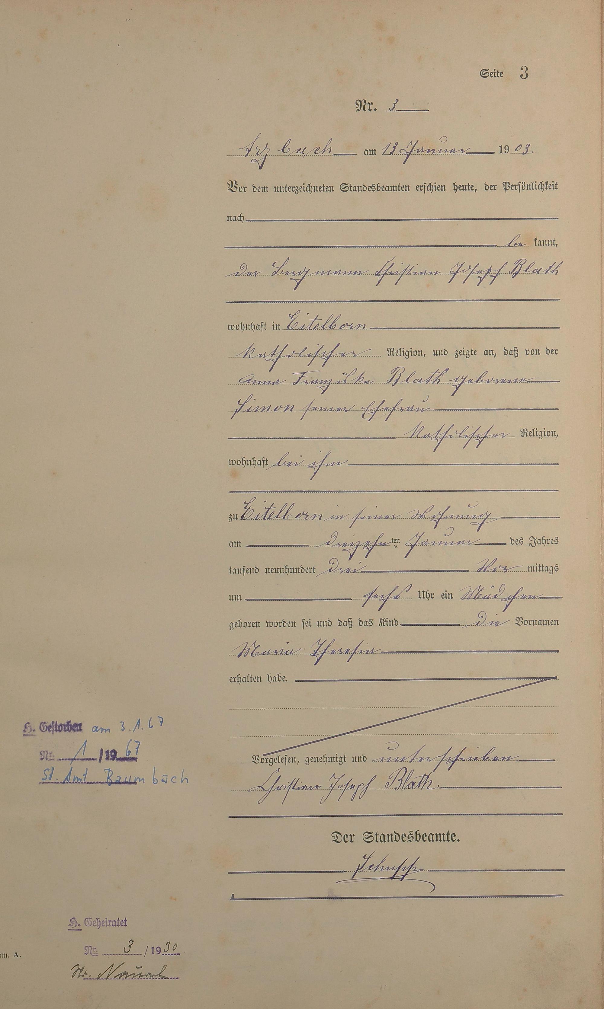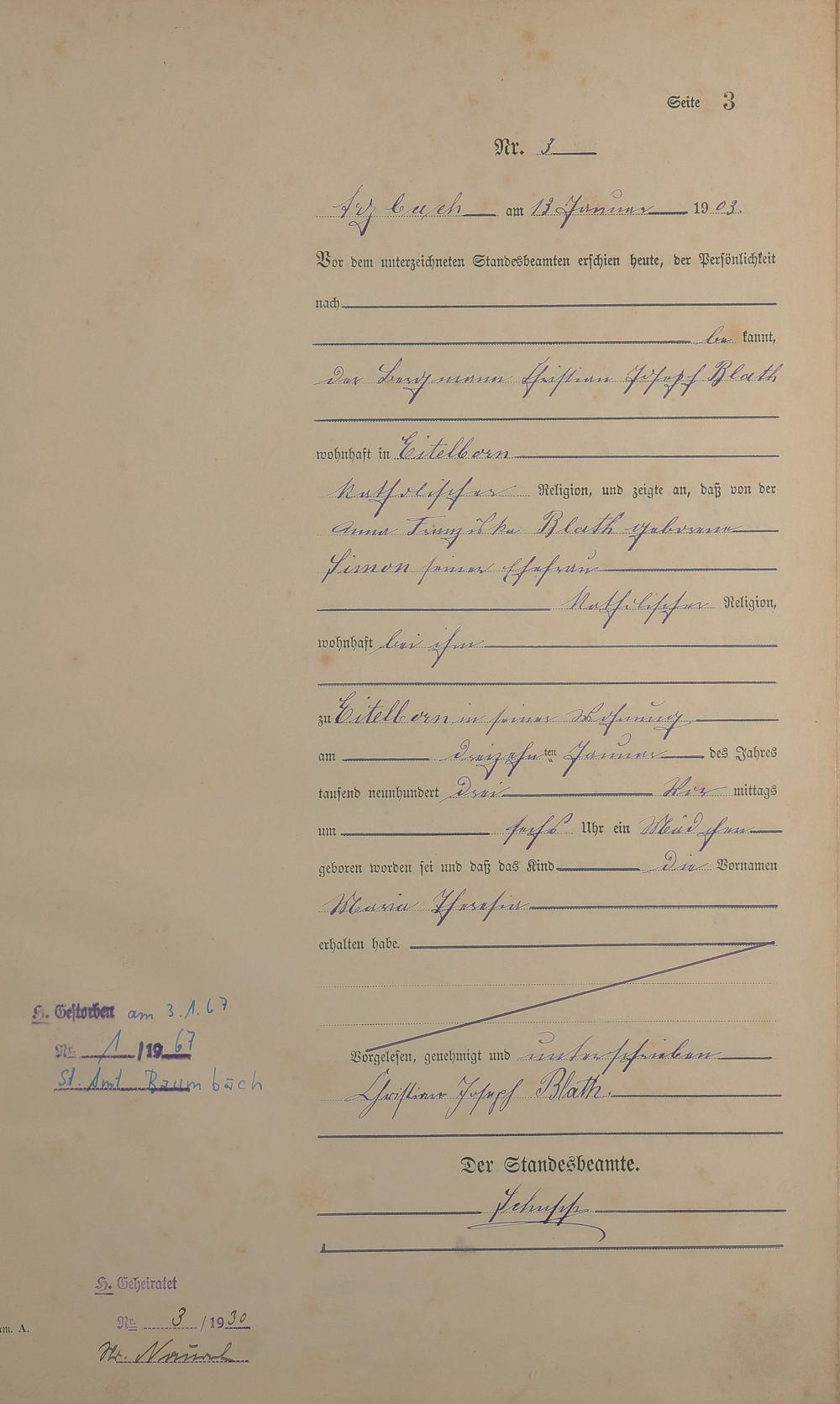 Geburtsregister 1903