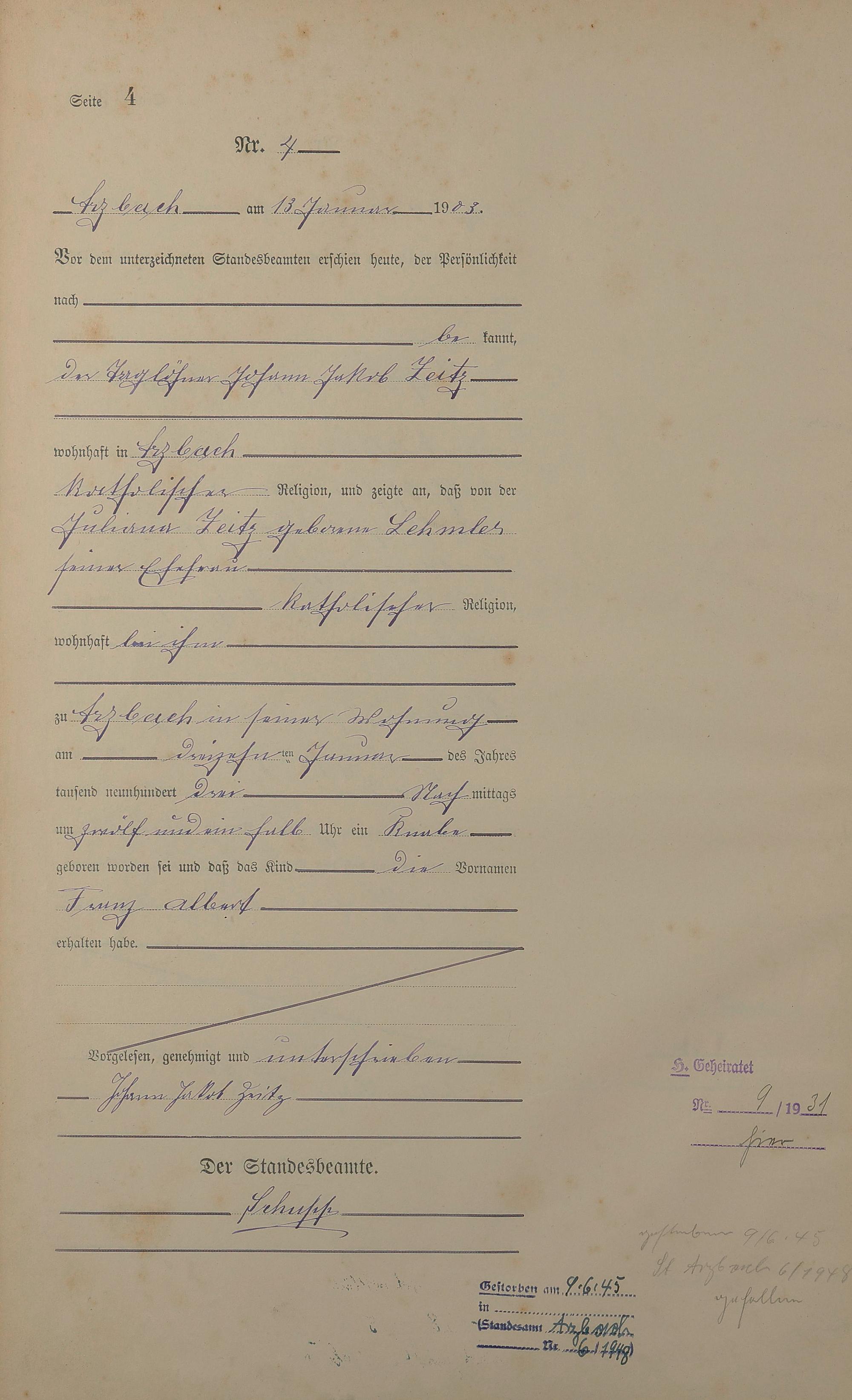 Geburtsregister 1903