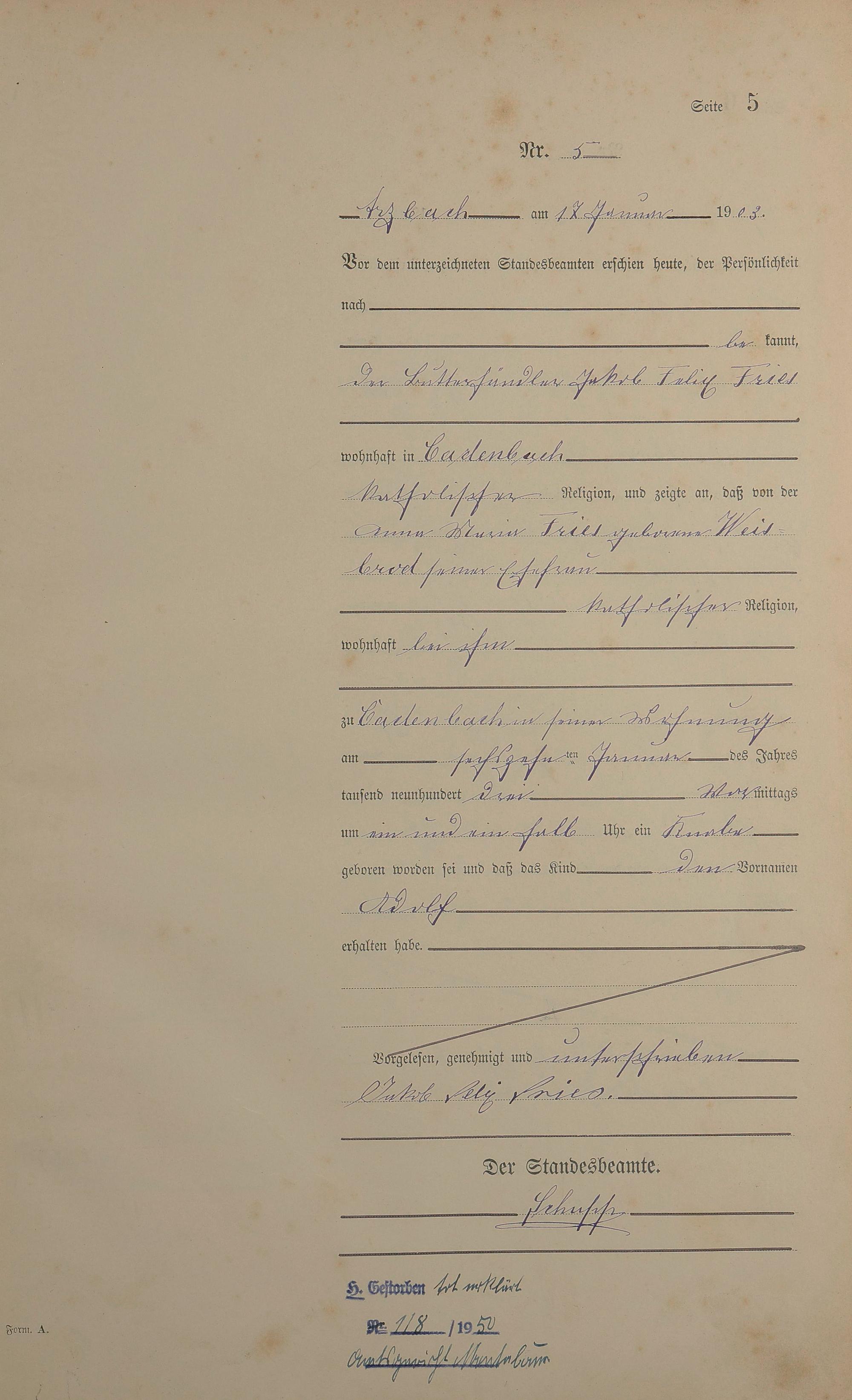 Geburtsregister 1903