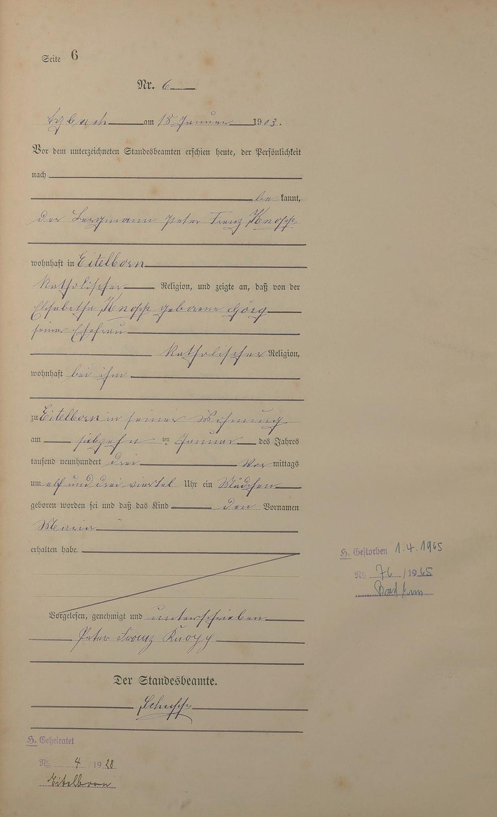 Geburtsregister 1903