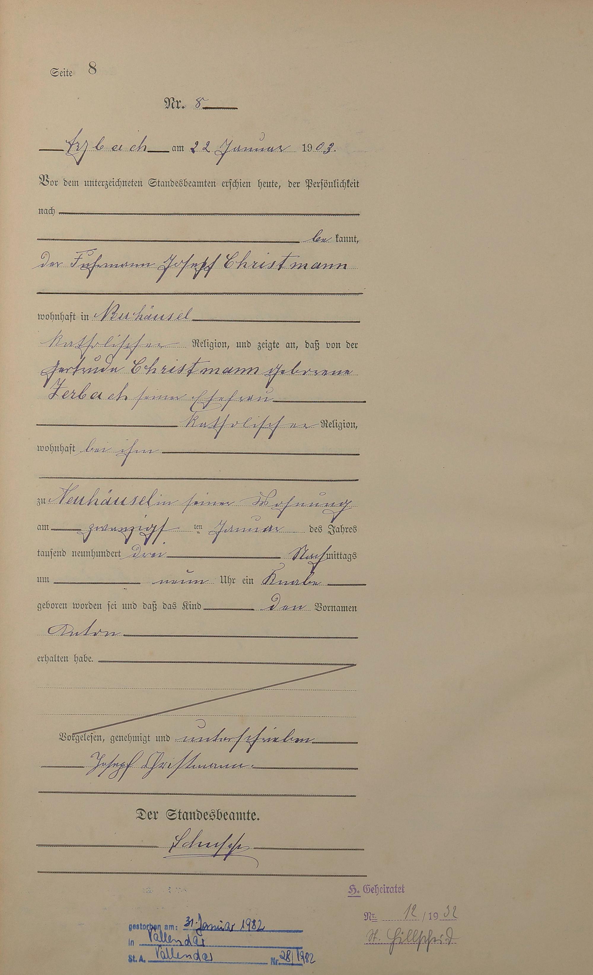 Geburtsregister 1903