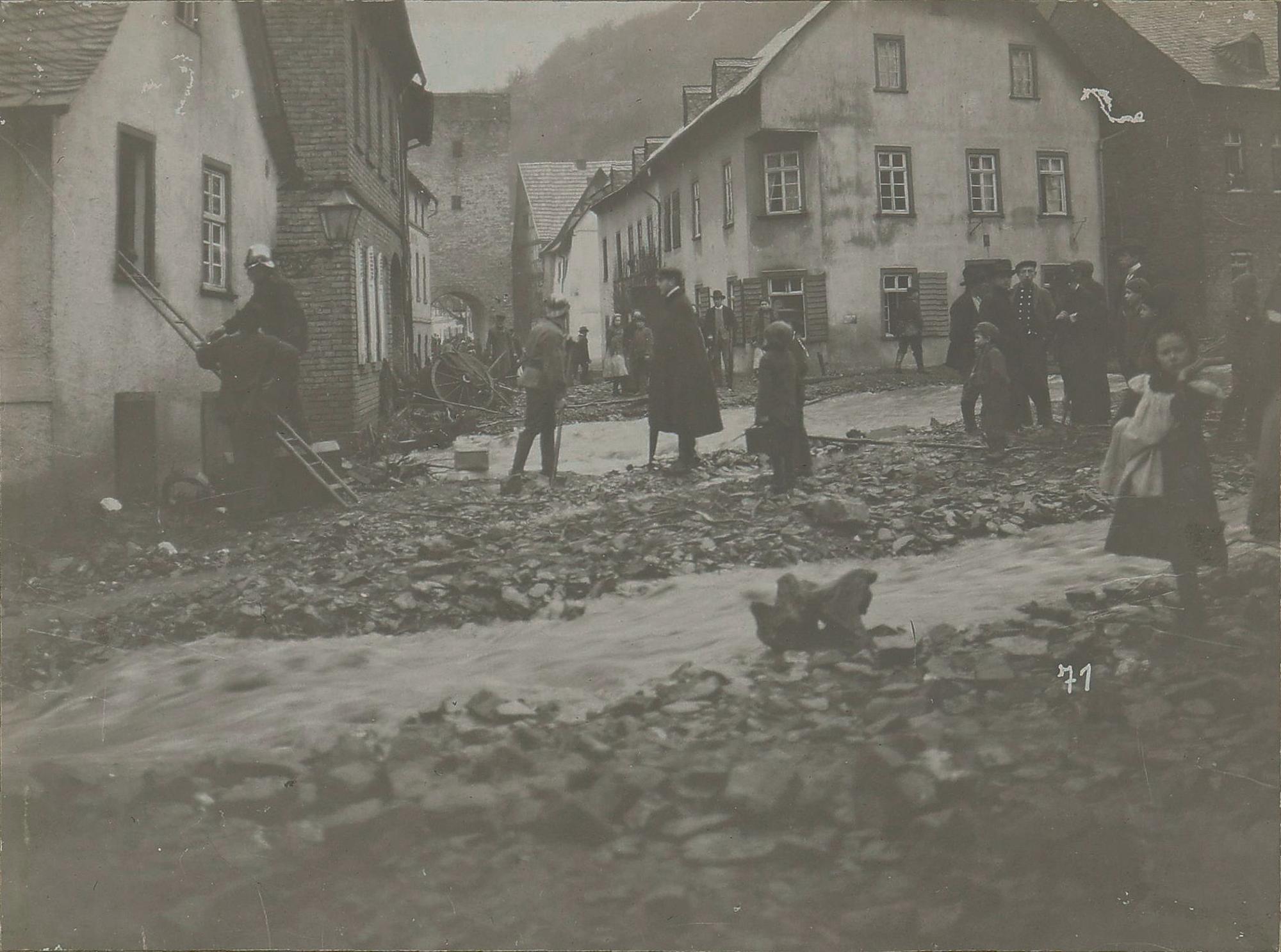 Hochwasser Dausenau - Lahnstraße mit Stadttor