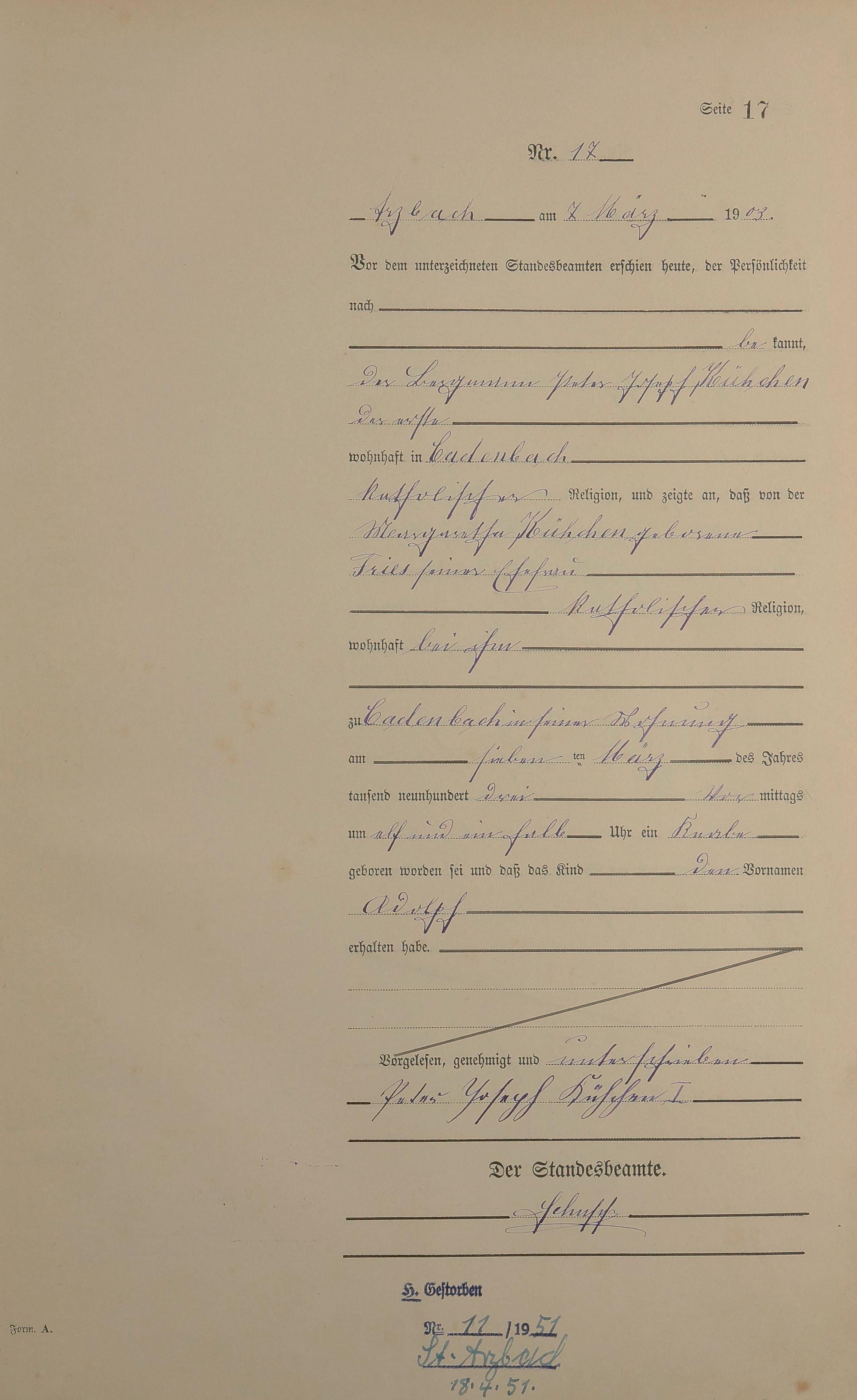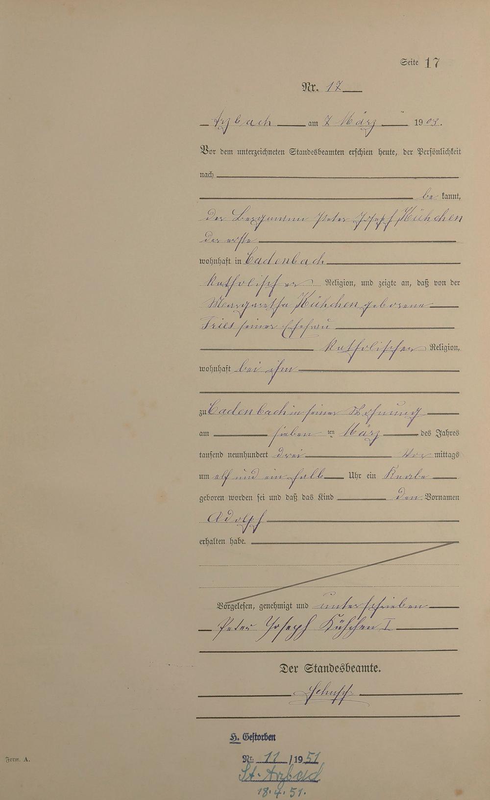 Geburtsregister 1903