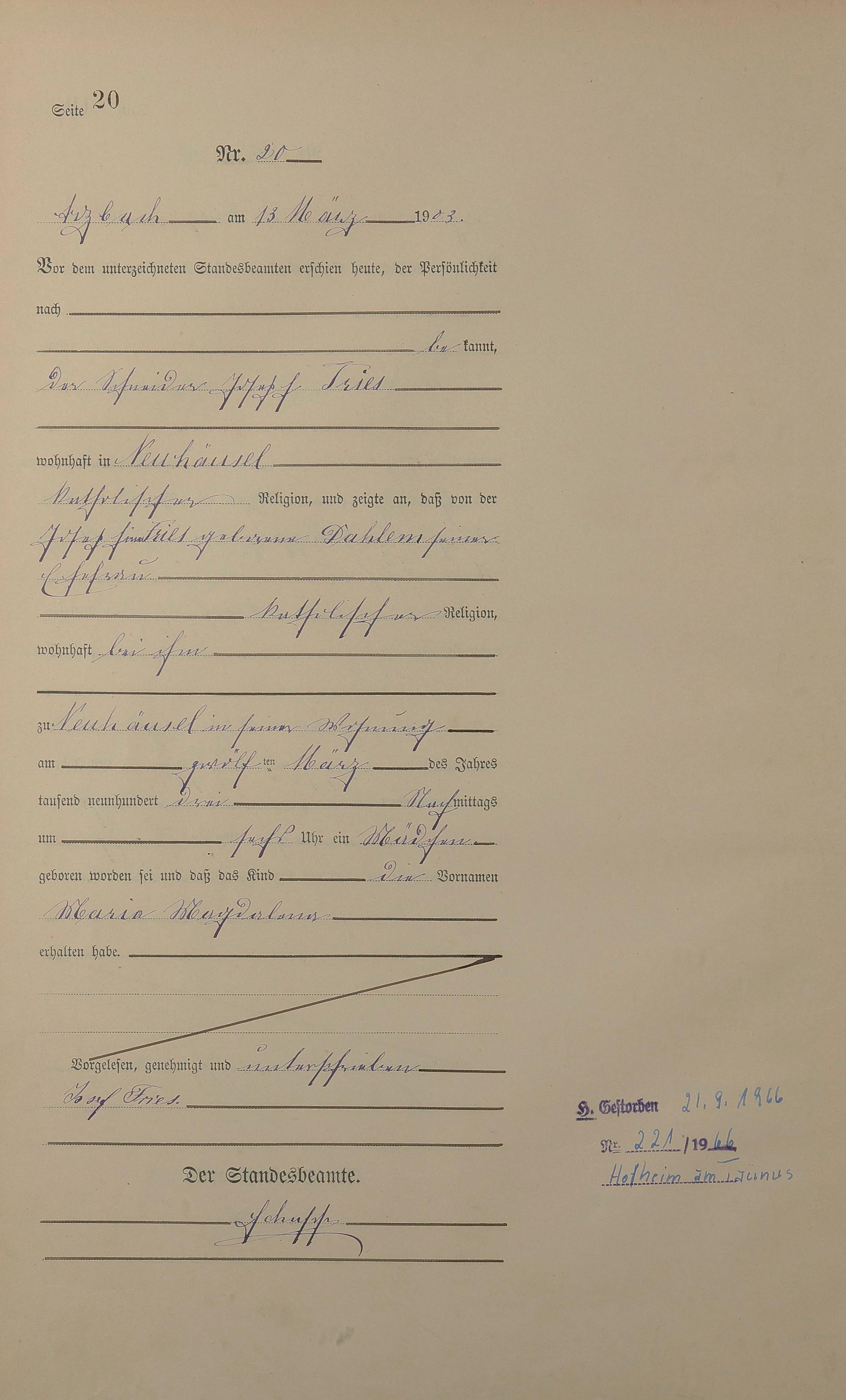 Geburtsregister 1903
