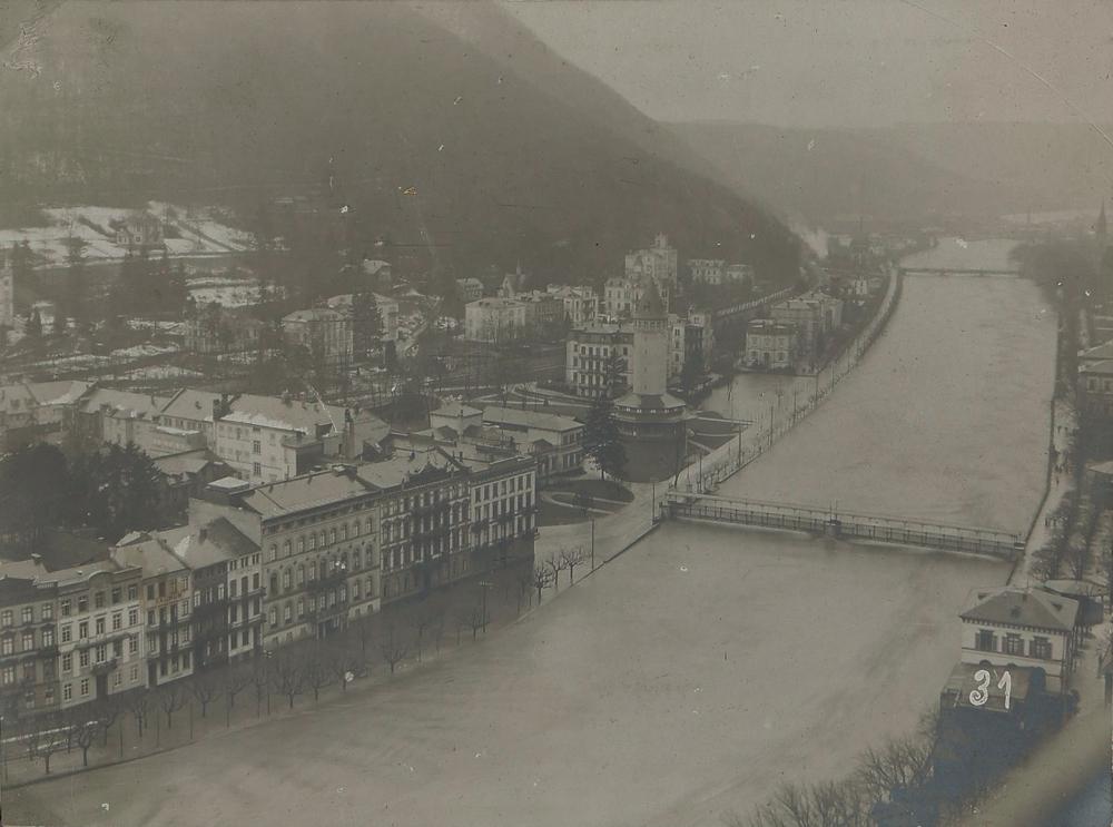 Hochwasser Bad Ems - Total von Osten mit Spieß und Quellenturm