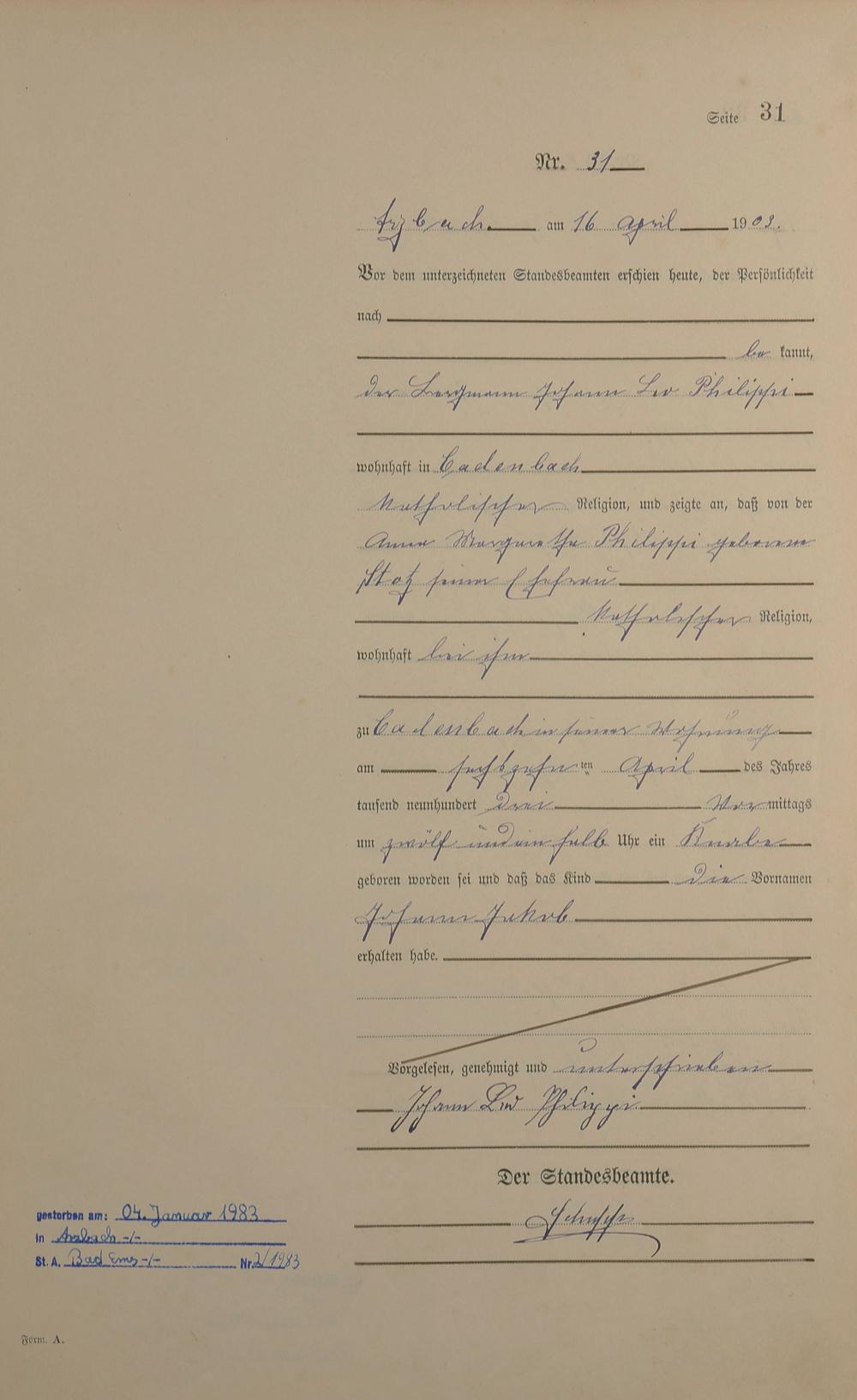 Geburtsregister 1903