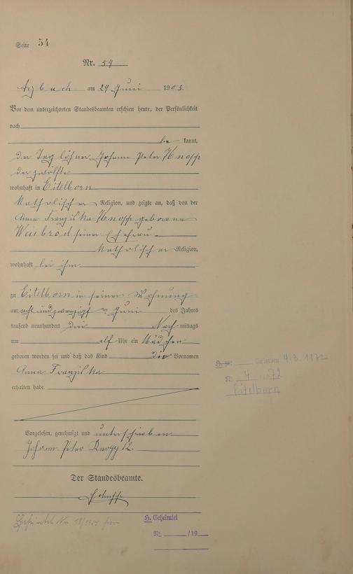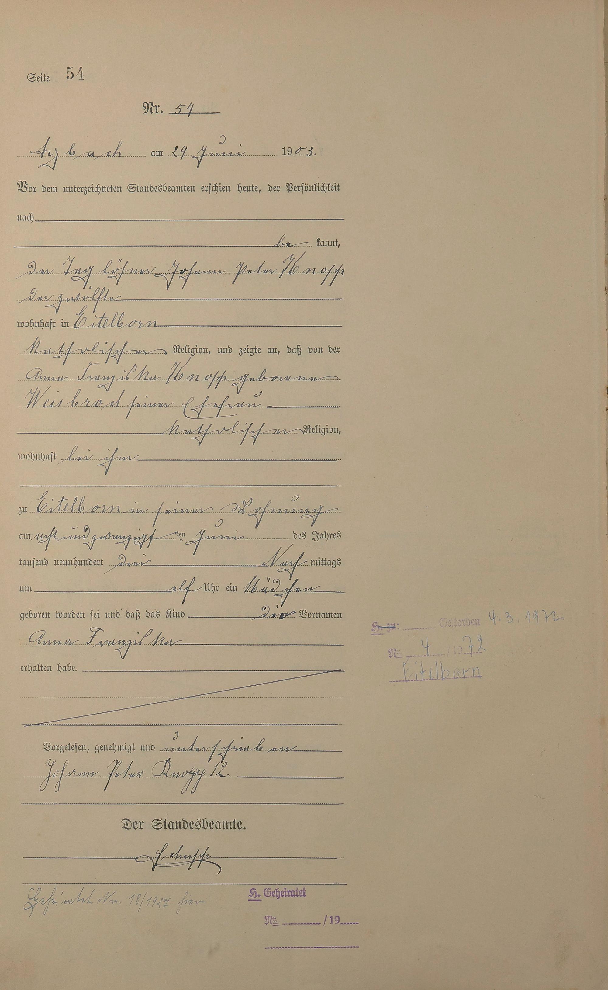 Geburtsregister 1903