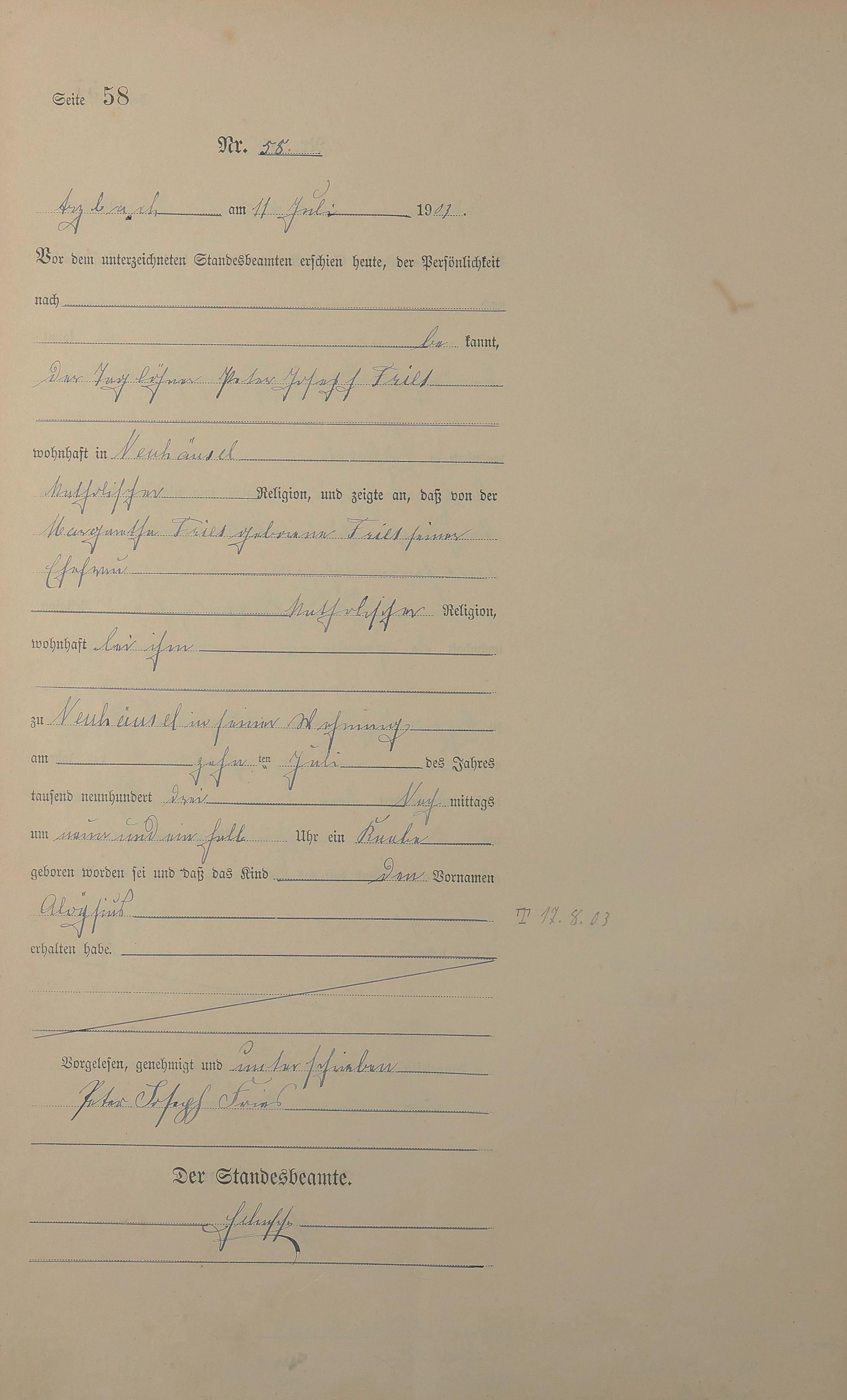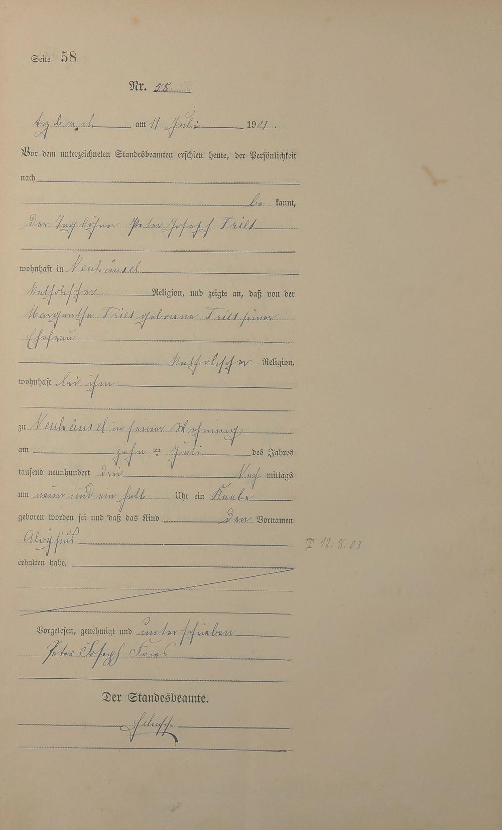 Geburtsregister 1903