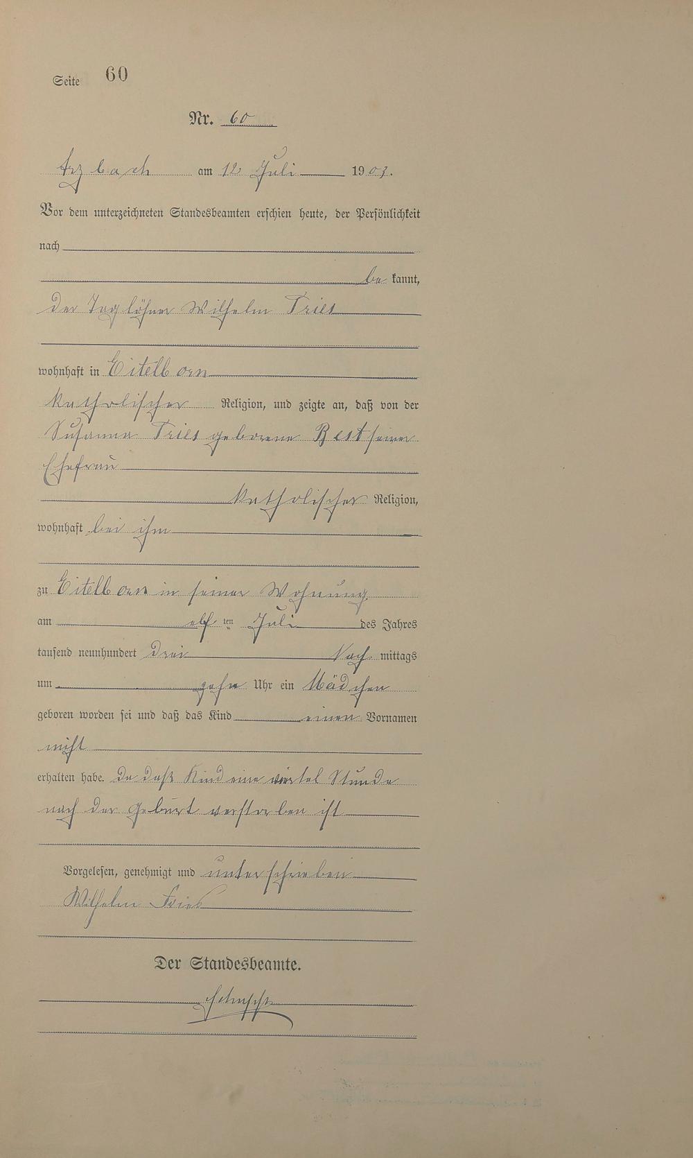 Geburtsregister 1903