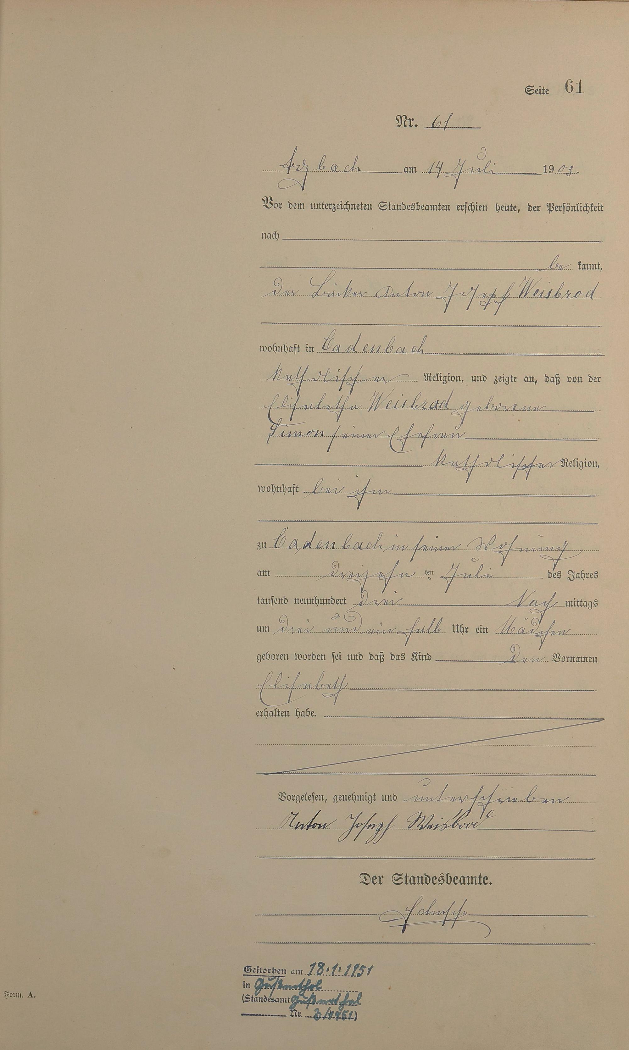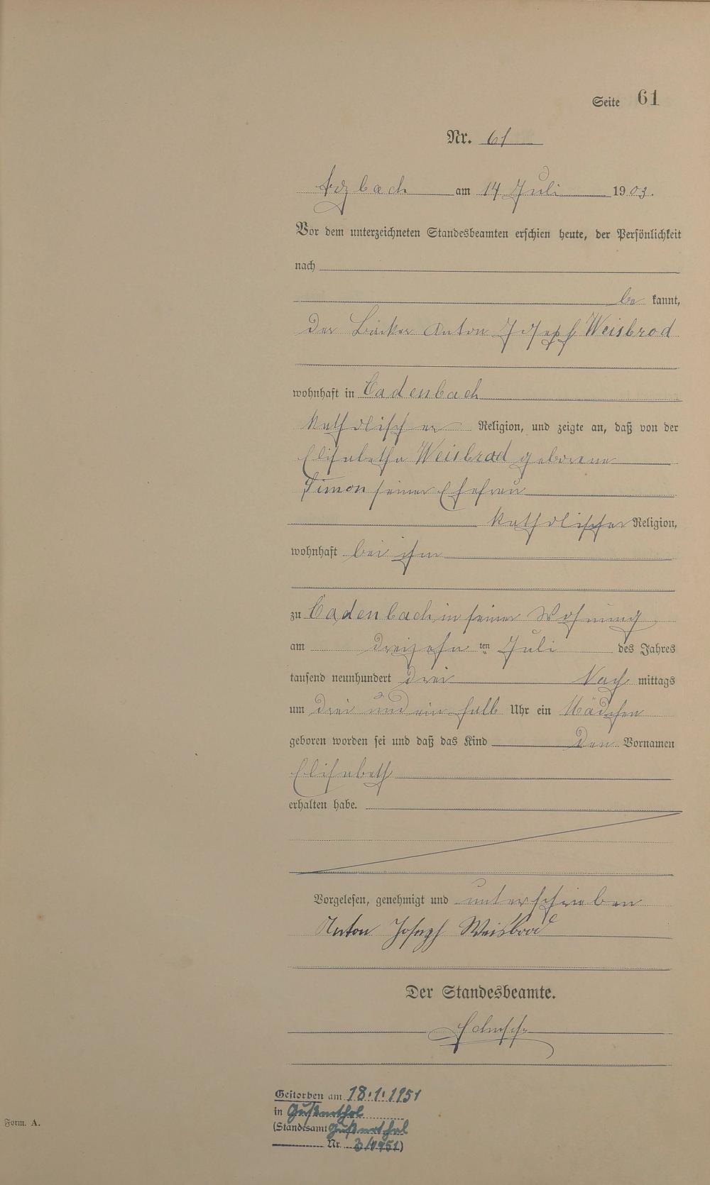 Geburtsregister 1903