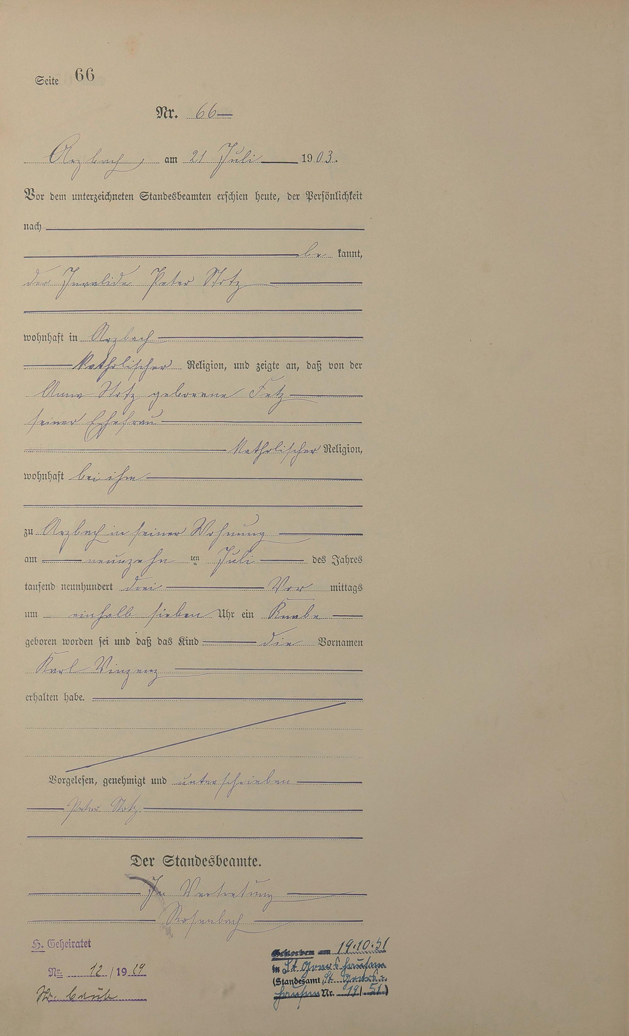 Geburtsregister 1903