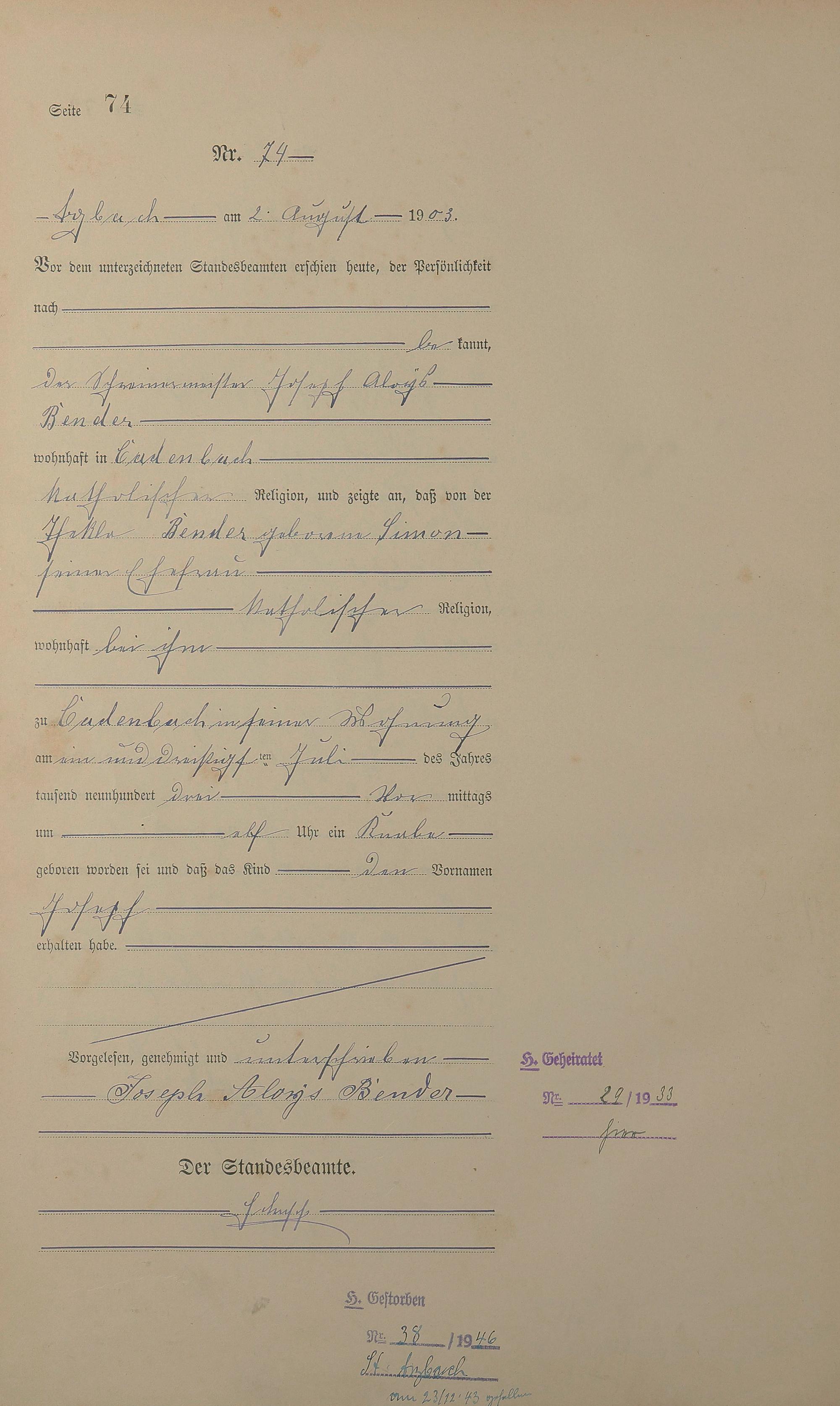 Geburtsregister 1903