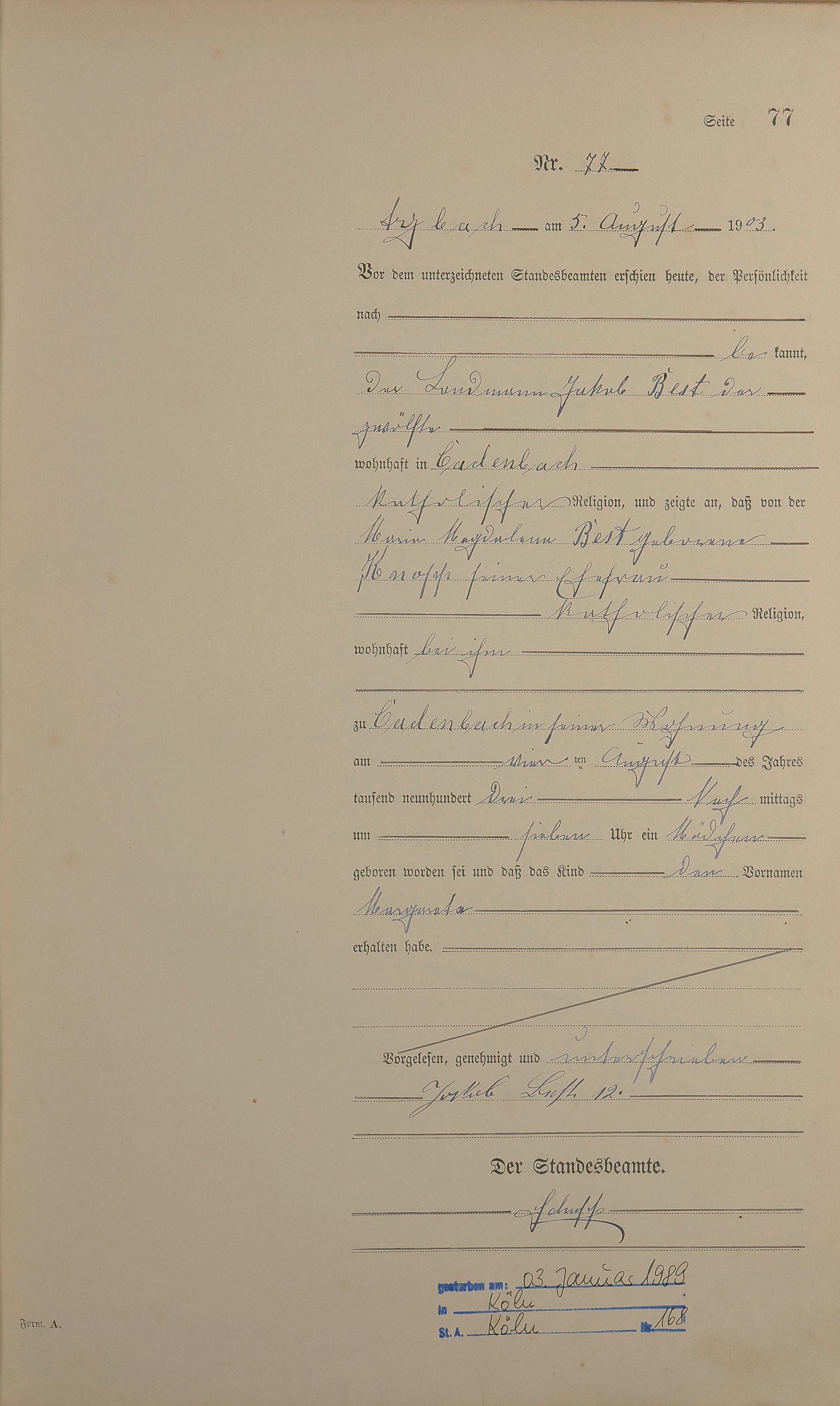 Geburtsregister 1903