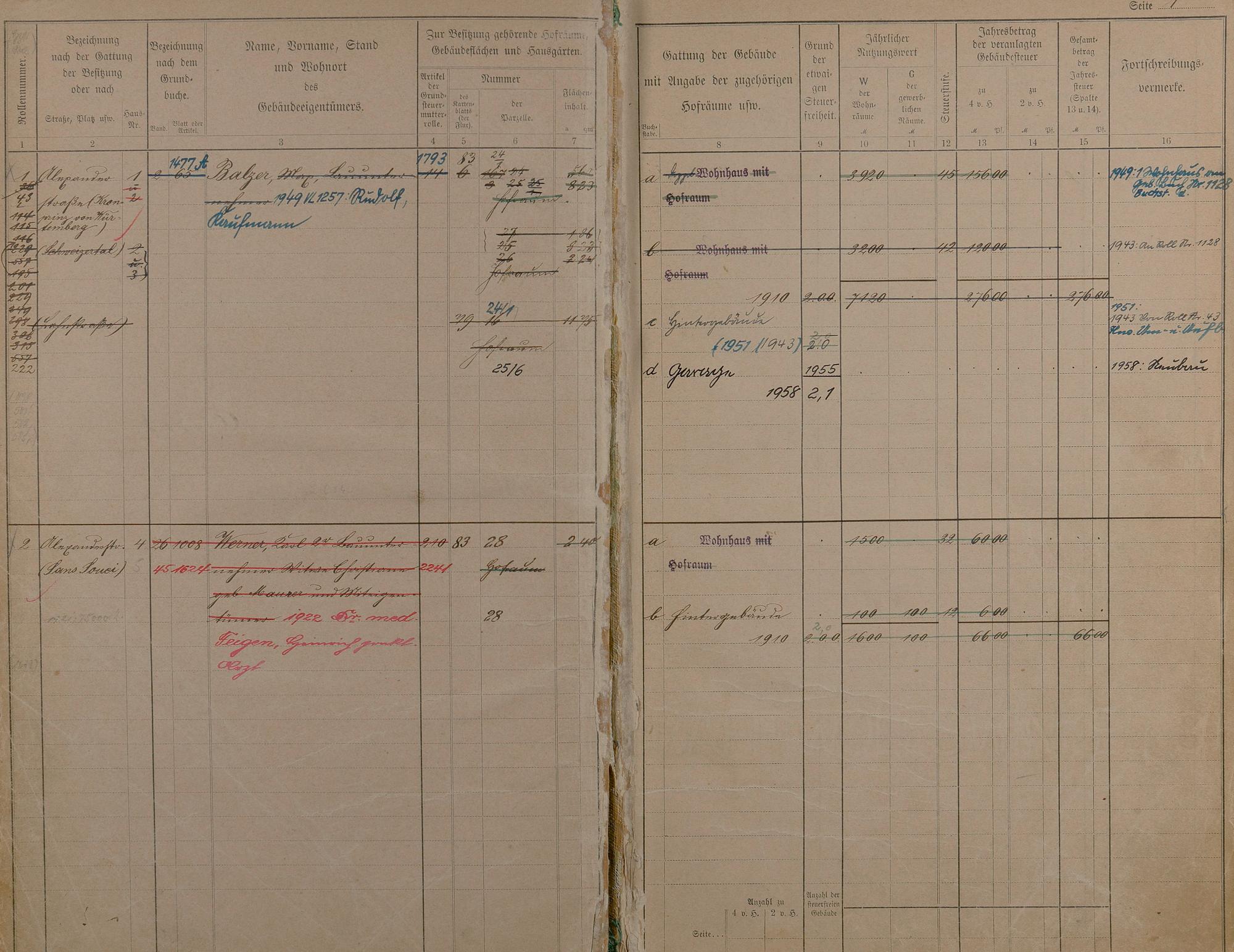 1199: Gebäudebuch des Gemeindebezirks Ems - Virtuelle Zusammenstellung nach Straßen...