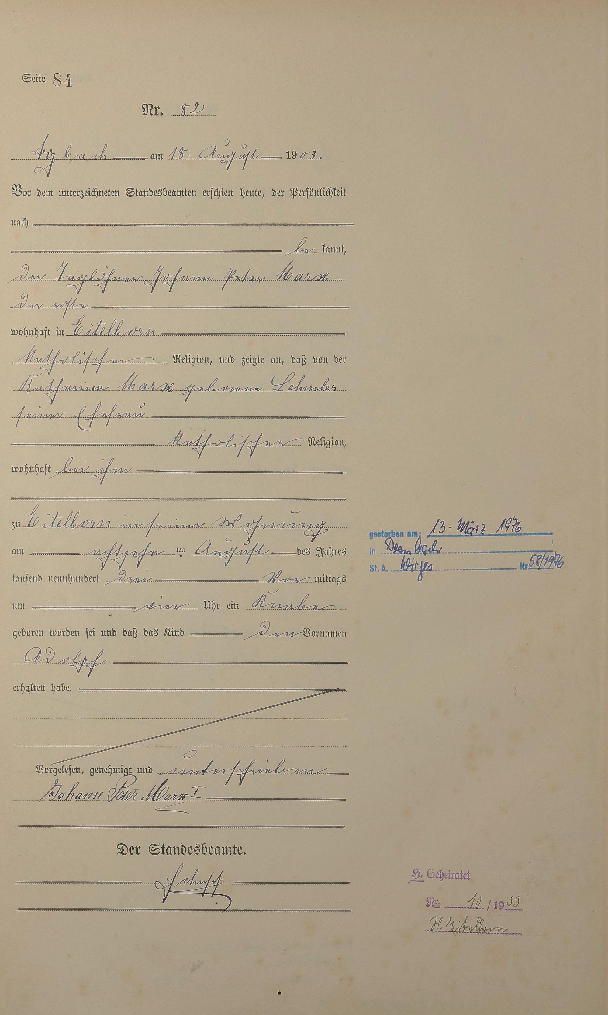Geburtsregister 1903