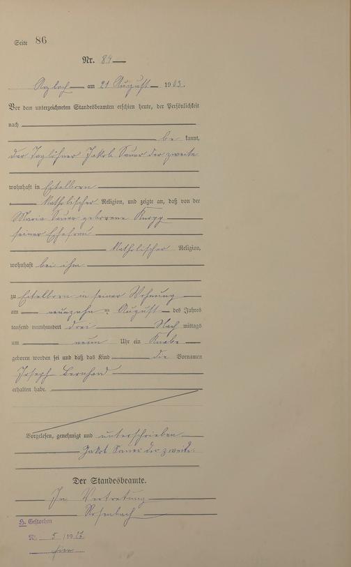 Geburtsregister 1903