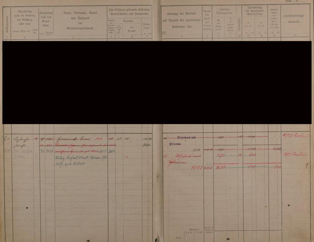 1199: Gebäudebuch des Gemeindebezirks Ems - Virtuelle Zusammenstellung nach Straßen...